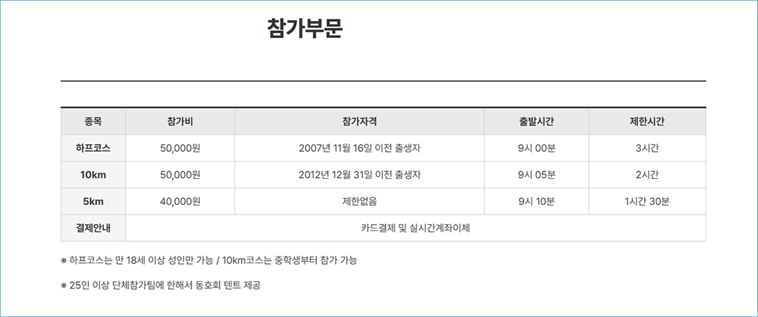 접근성이 뛰어난 것이 큰 장점입니다. 부산 외 지역 참가자들도 이동이 편리해 많은 러너들이 찾습니다.2️⃣ 참가 부문 및 참가비