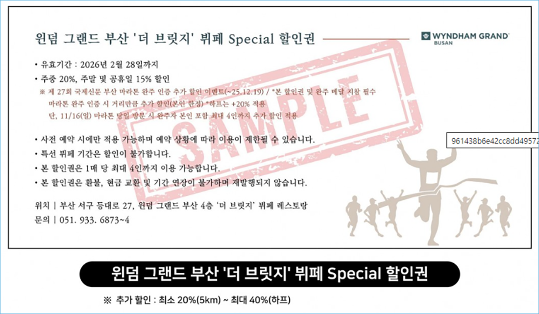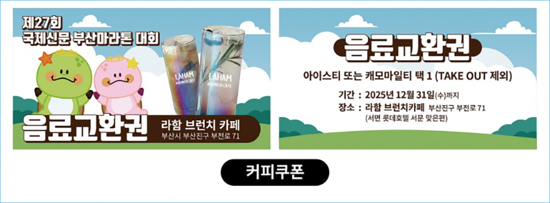 다만, 교환권 사용처가 서면 일대 카페로 지정되어 있어 대회 종료 후 현장에서 바로 이용하기는 다소 어렵다는 점은 아쉬운 부분입니다. 그래도 참가비를 고려했을 때 전반적으로 무난한 구성으로 평가됩니다.5️⃣ 코스 특징