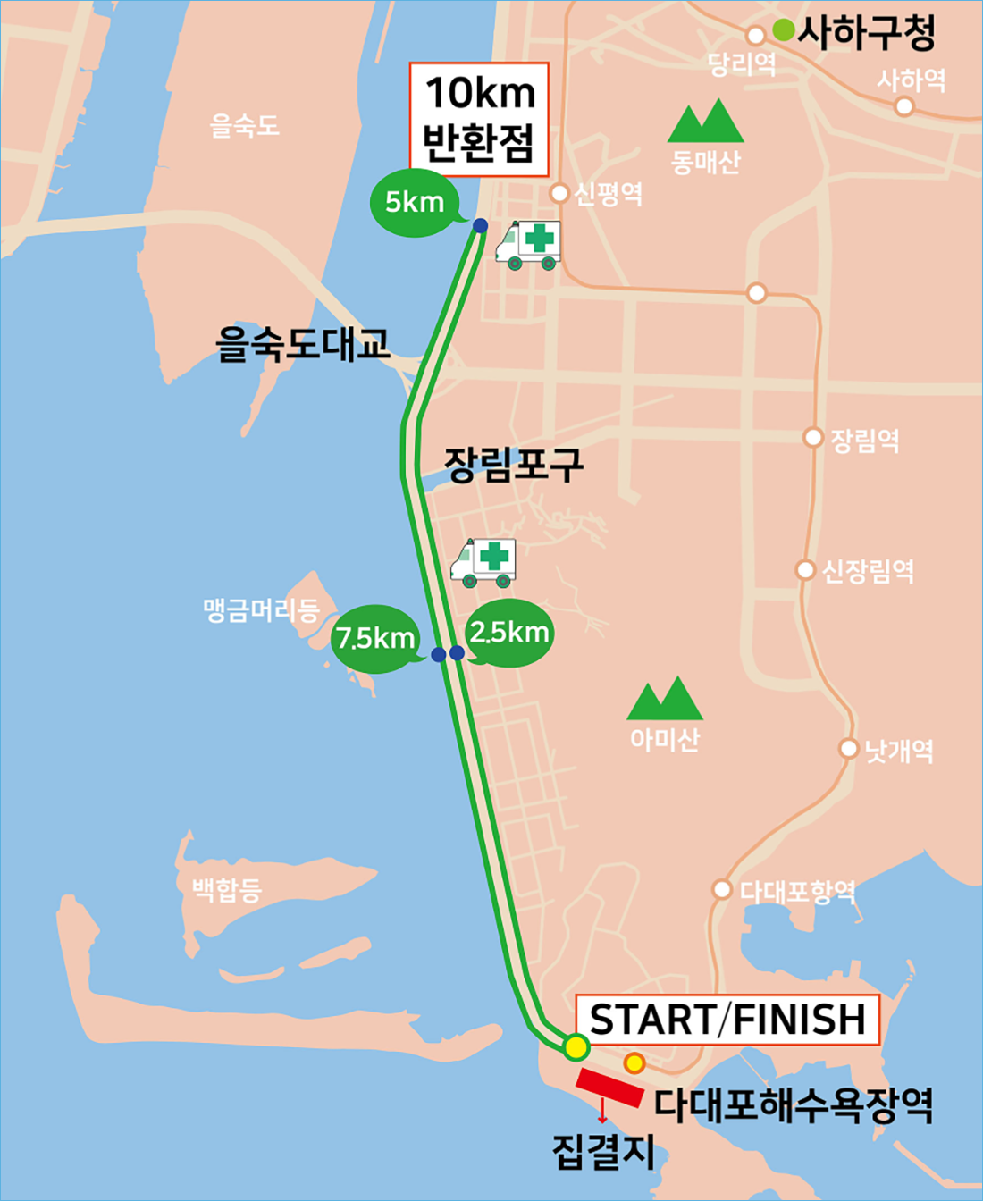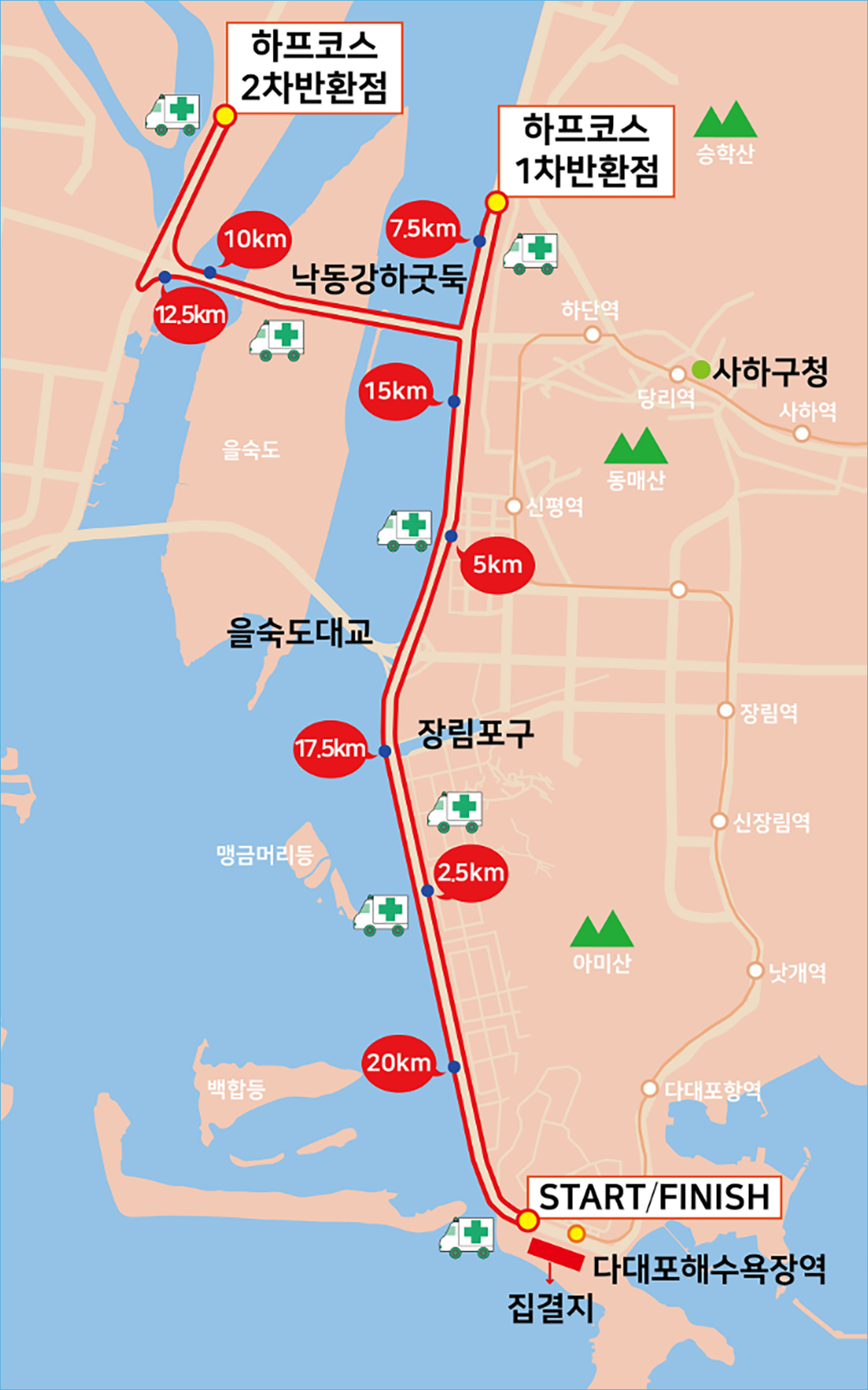 특히 하프 코스의 경우 을숙도대교를 지나 낙동강 하굿둑을 달리는 코스로,