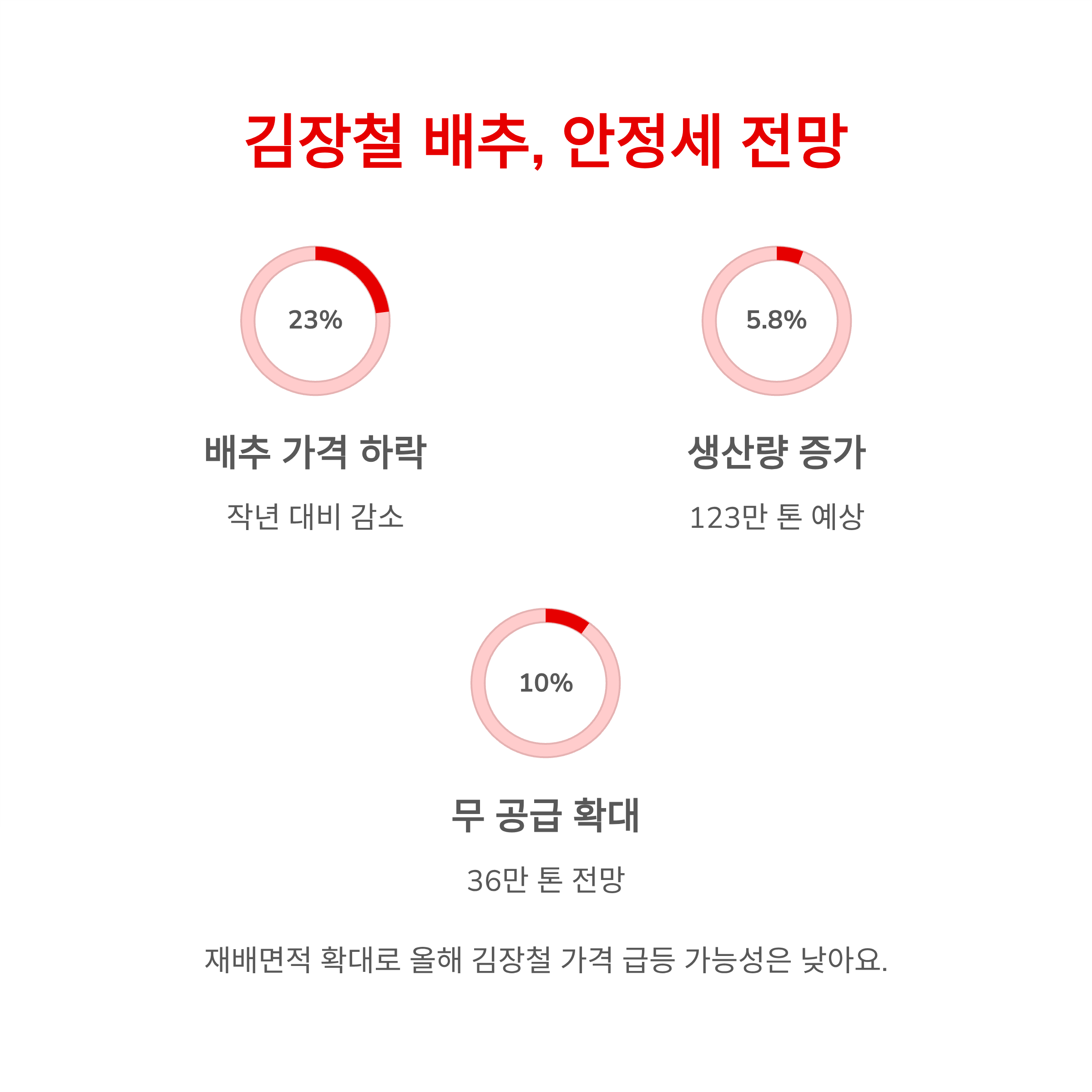 그렇다면 걱정되는 김장철 배추 가격은 어떨까요? 다행히 안정적일 전망이에요!