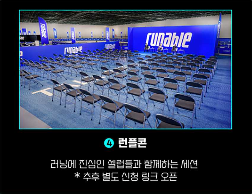 다양한 스포츠 브랜드 부스에서는 제품 체험과 할인 이벤트, 경품 추첨 등이 진행되고, 러닝 셀럽이나 선수들과의 토크세션인 '런플콘'도 예정되어 있어요. 구체적인 게스트와 일정은 추후 공지될 예정이니 공식 채널을 계속 확인해보는 것을 추천해요.