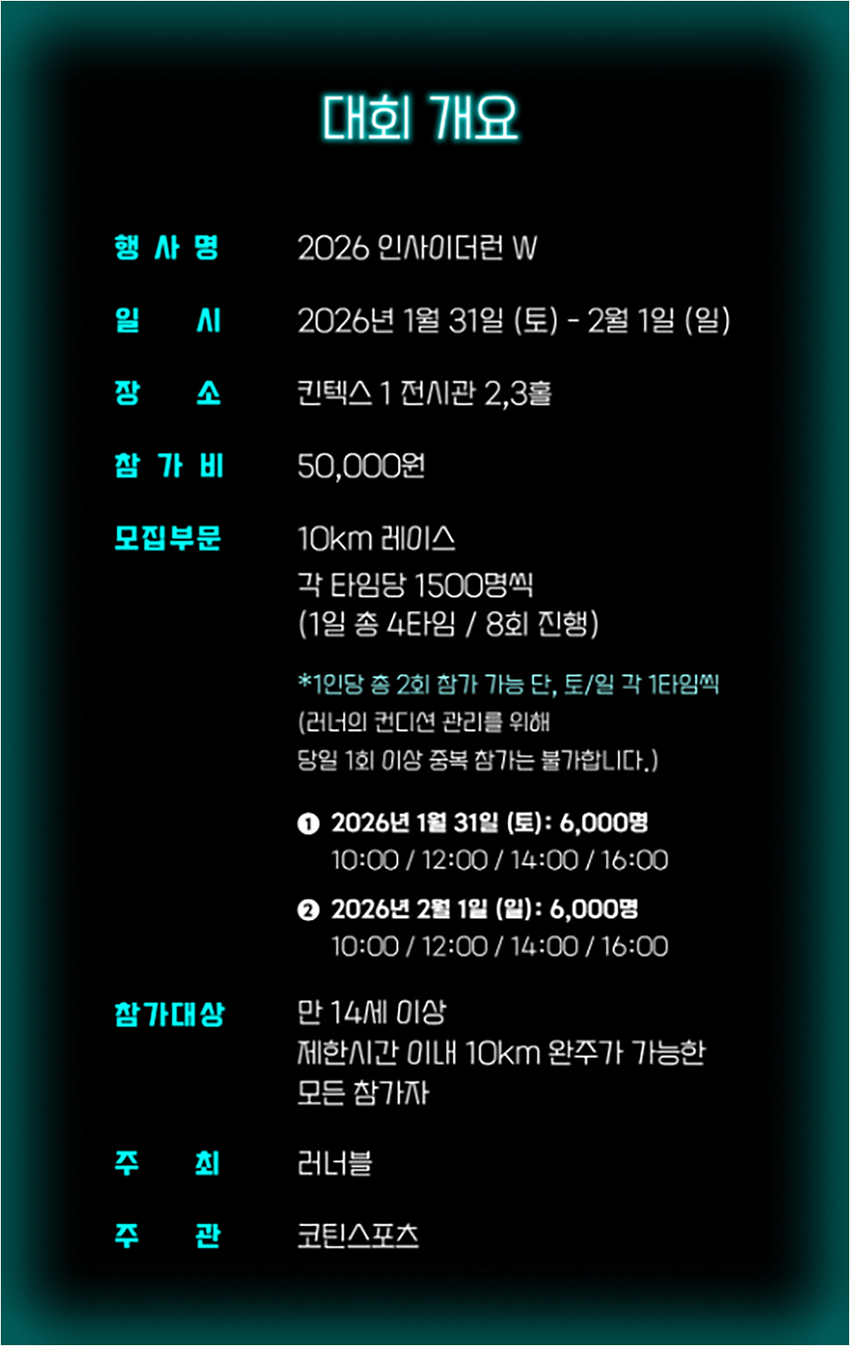 인사이드 런 W 2026 | 겨울철 실내 킨텍스 10km 레이스