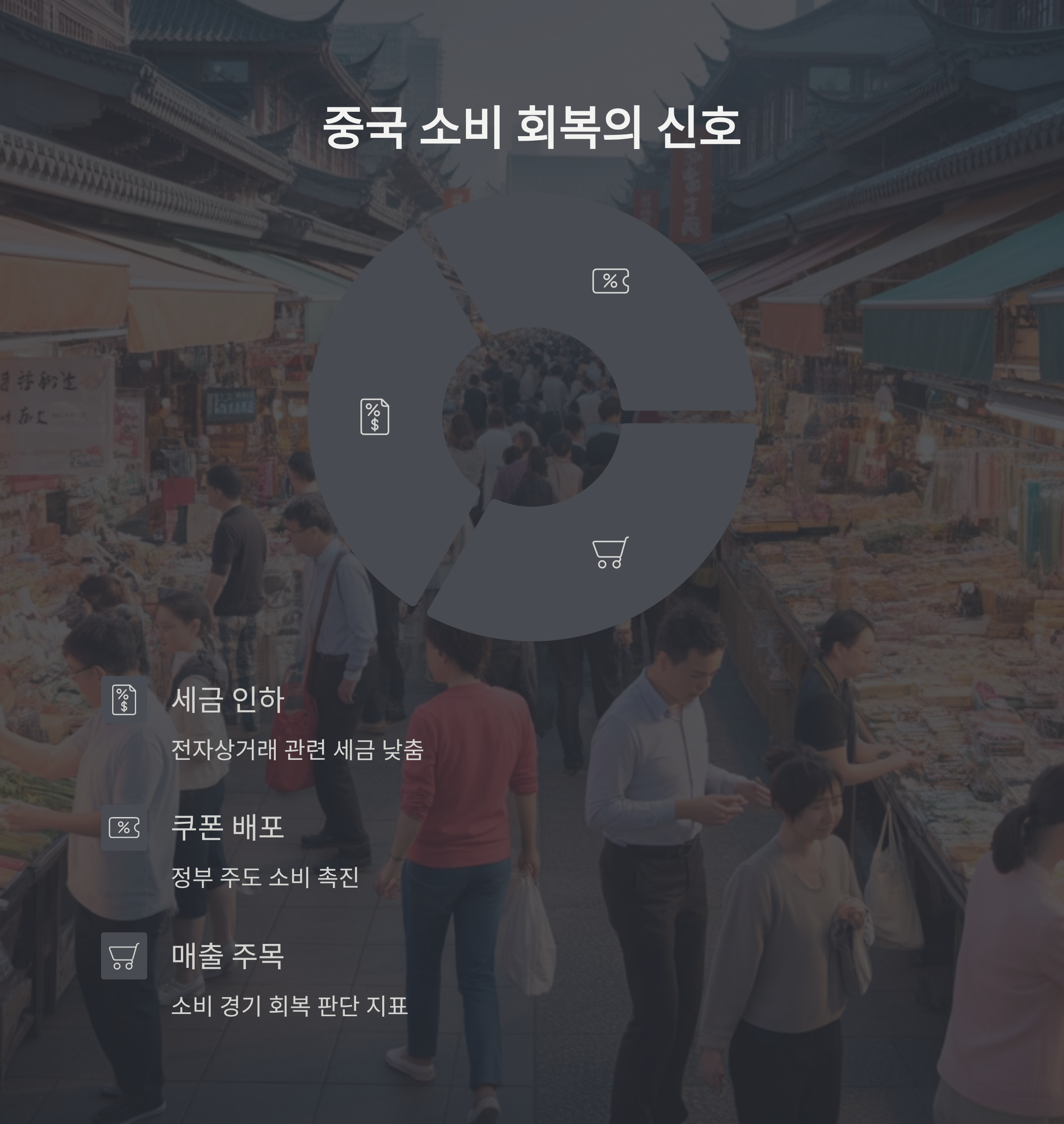 중국 정부는 전자상거래 관련 세금을 낮추고 쿠폰을 배포하는 등 소비를 촉진하기 위한 정책을 펼치고 있는데요. 따라서 이번 광군제 매출 실적은 중국 소비 경기가 회복되고 있는지를 판단할 수 있는 중요한 지표가 될 것입니다.