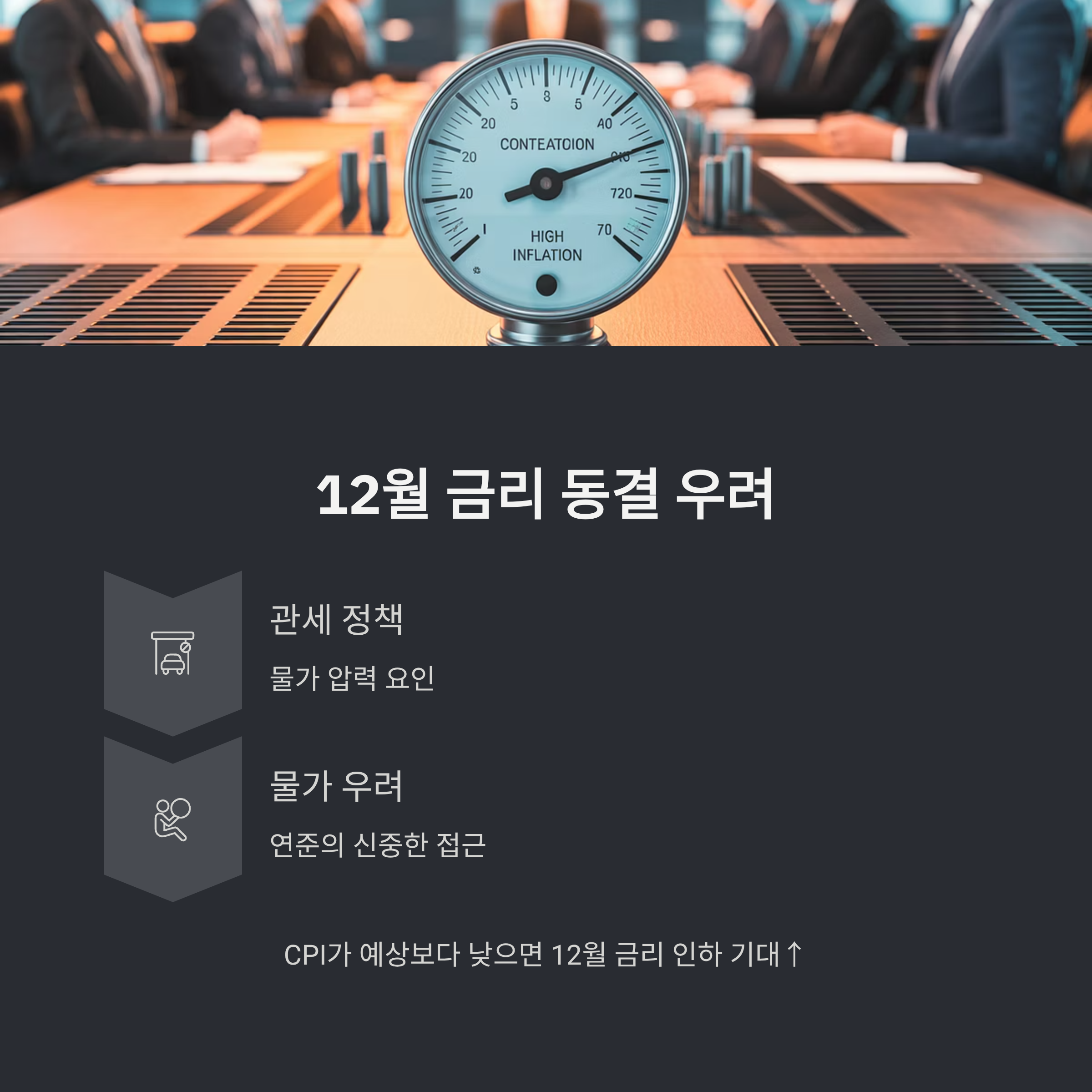 그런데 일부 연방준비제도 관계자들이 12월에는 금리를 동결할 가능성을 언급하면서 시장에 긴장감이 감돌고 있습니다. 이는 미국의 관세 정책과 물가 압력에 대한 우려 때문인데요. 이번에 발표될 10월 소비자물가지수가 예상보다 낮게 나온다면 12월 추가 금리 인하에 대한 기대감이 커지면서 나스닥 전망도 긍정적으로 바뀔 수 있습니다.