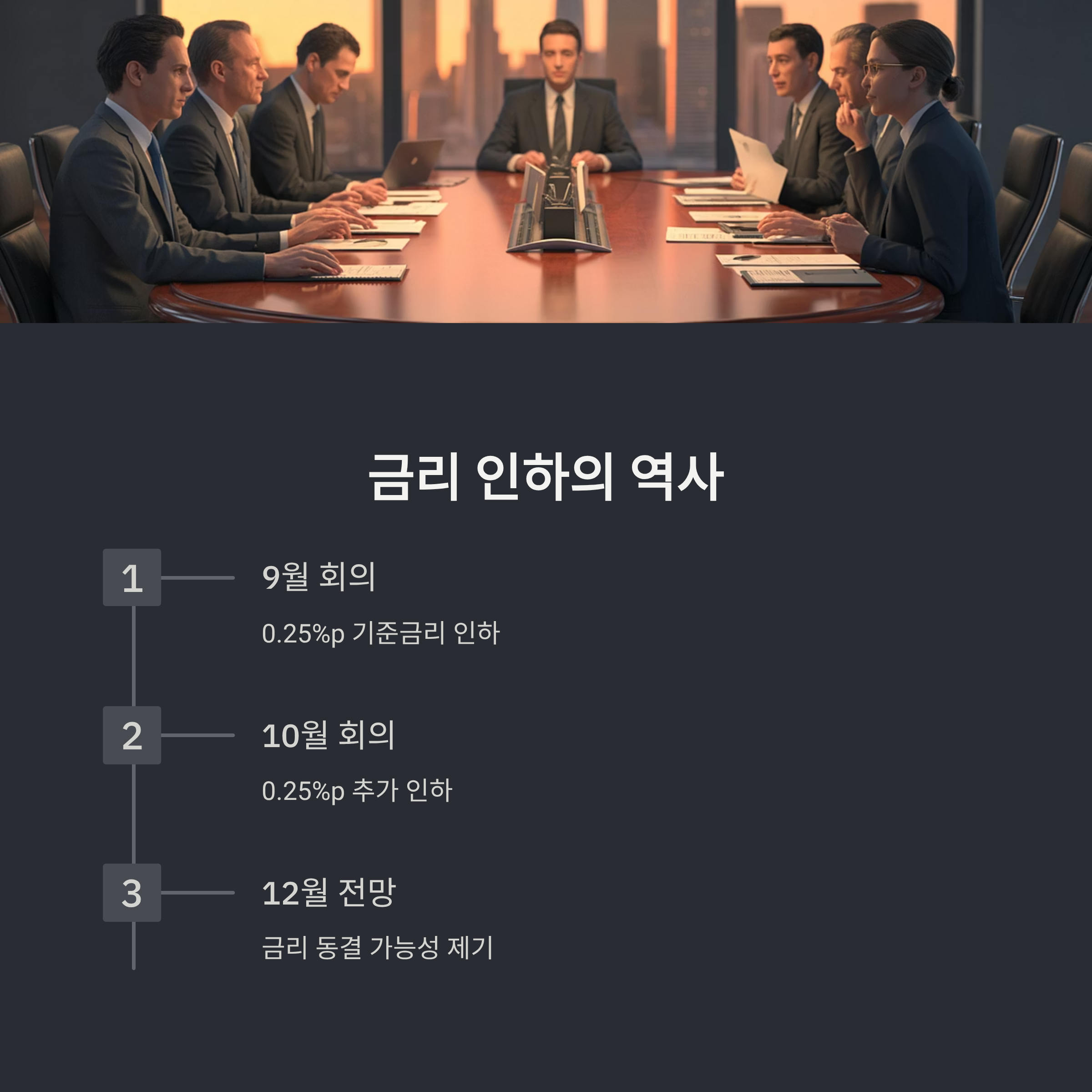 지난 9월 발표된 소비자물가지수가 시장 예상치를 밑돌면서 물가 상승세가 둔화되고 있다는 신호를 보냈고, 이후 미국 주요 지수들은 동반 상승했습니다. 이런 흐름에 힘입어 연방준비제도는 9월과 10월 회의에서 각각 0.25%포인트씩 기준금리를 내렸습니다.
