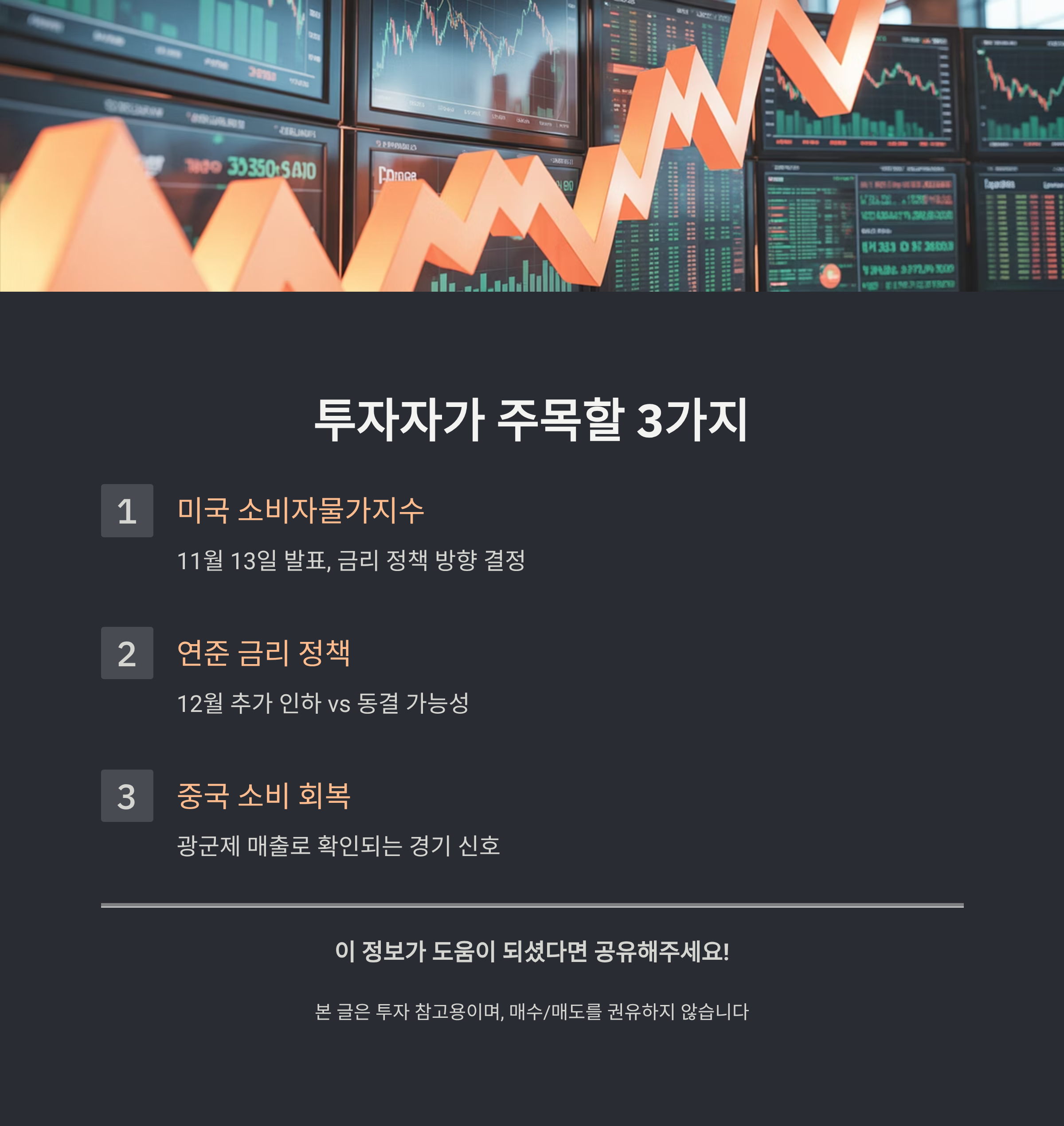 특히 미국 소비자물가지수 발표와 중국의 대규모 쇼핑 이벤트 결과가 글로벌 증시의 향방을 결정할 핵심 변수가 될 것입니다. 지금부터 여러분이 꼭 알아야 할 핵심 포인트들을 하나씩 살펴보겠습니다.