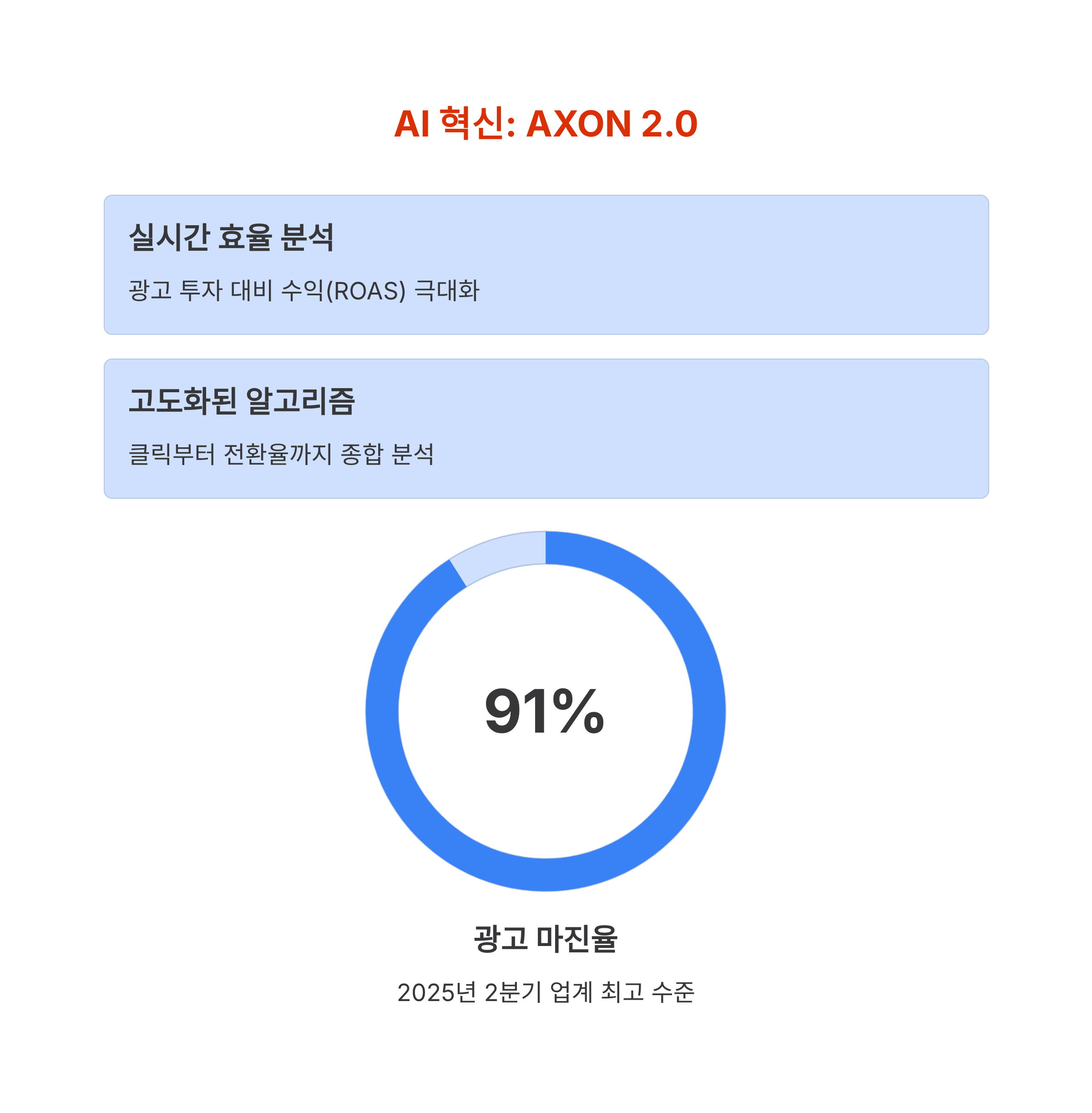 ‘Axon Ads Manager’를 통해 광고 등록부터 집행까지 전 과정을 자동화했죠. 이 덕분에 중소형 판매자도 손쉽게 광고를 운영할 수 있게 되었습니다.