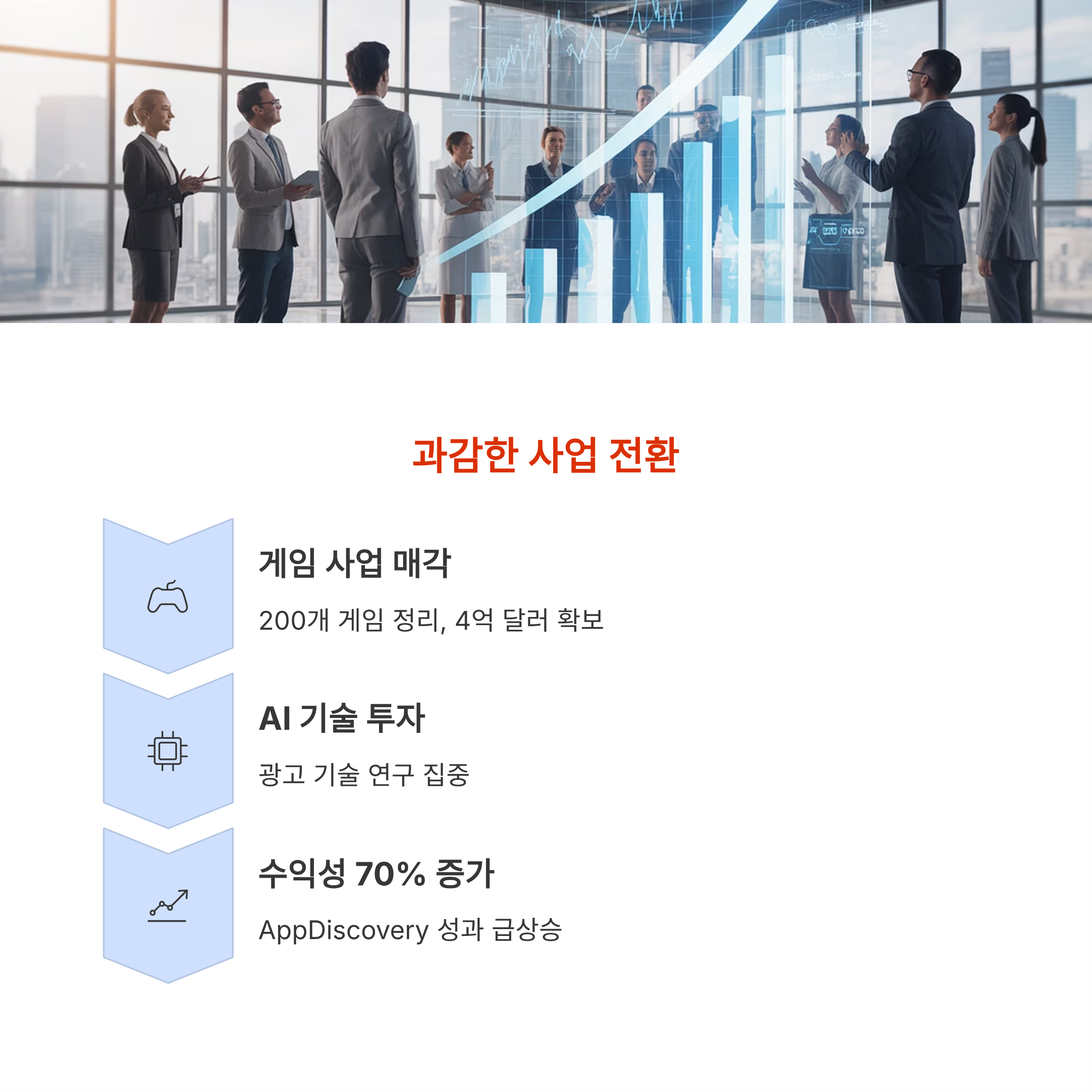AXON은 ‘AI 기반 광고 혁신’의 중심으로, 앱러빈의 기술 경쟁력을 상징하는 키워드입니다.4️⃣ 게임에서 기술로, 과감한 사업 전환