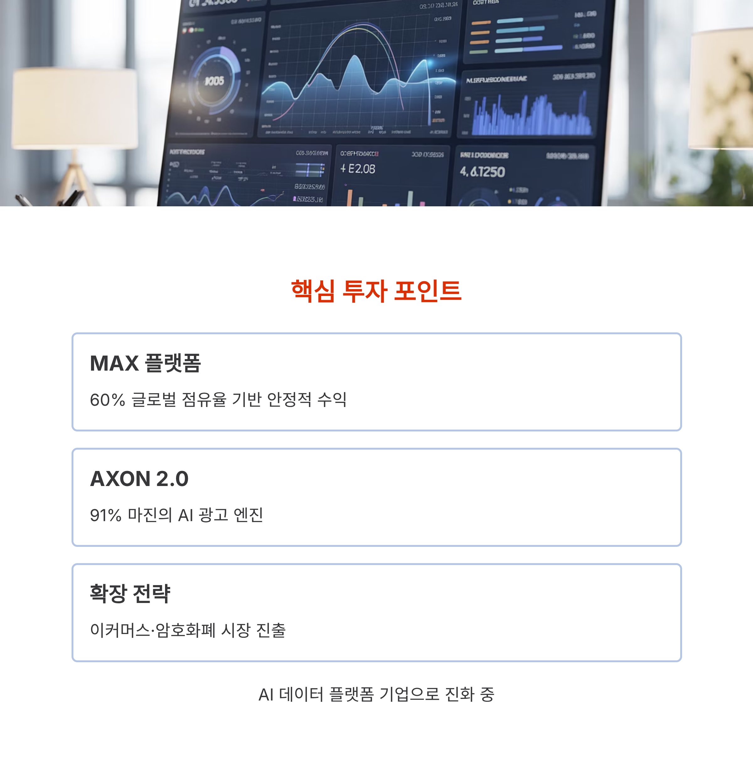 MAX와 AXON이라는 두 축을 기반으로, 고수익 구조와 폭넓은 확장성을 모두 확보했죠. 이제 단순 광고회사가 아니라, AI 데이터 플랫폼 기업으로의 진화를 보여주고 있습니다.