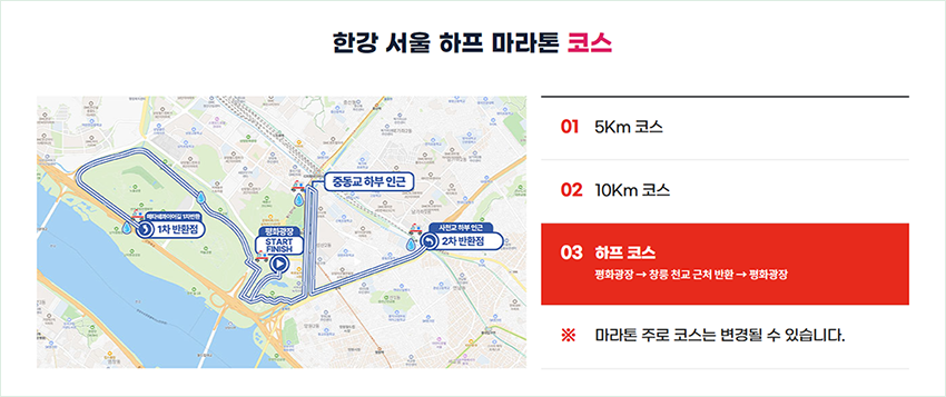 하프 마라톤과 10km 종목에는 기록칩이 제공되어 넷타임으로 정확한 기록을 측정할 수 있어요. 시상은 건타임 기준으로 진행되니 참고하세요!5. 참가자 혜택