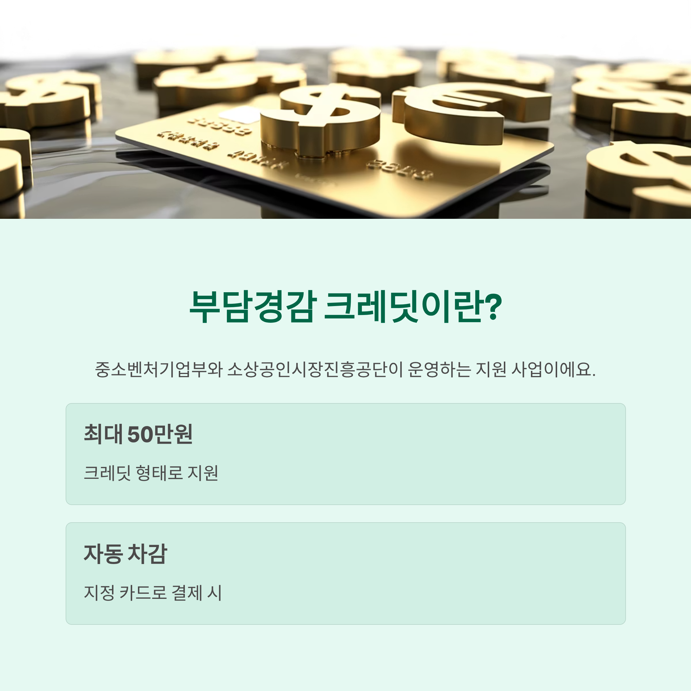 소상공인 부담경감 크레딧은 중소벤처기업부와 소상공인시장진흥공단이 함께 운영하는 지원 사업이에요. 사업을 운영하다 보면 매달 고정적으로 나가는 비용들이 있잖아요. 전기세, 가스비, 통신비, 4대 보험료 같은 것들이요.