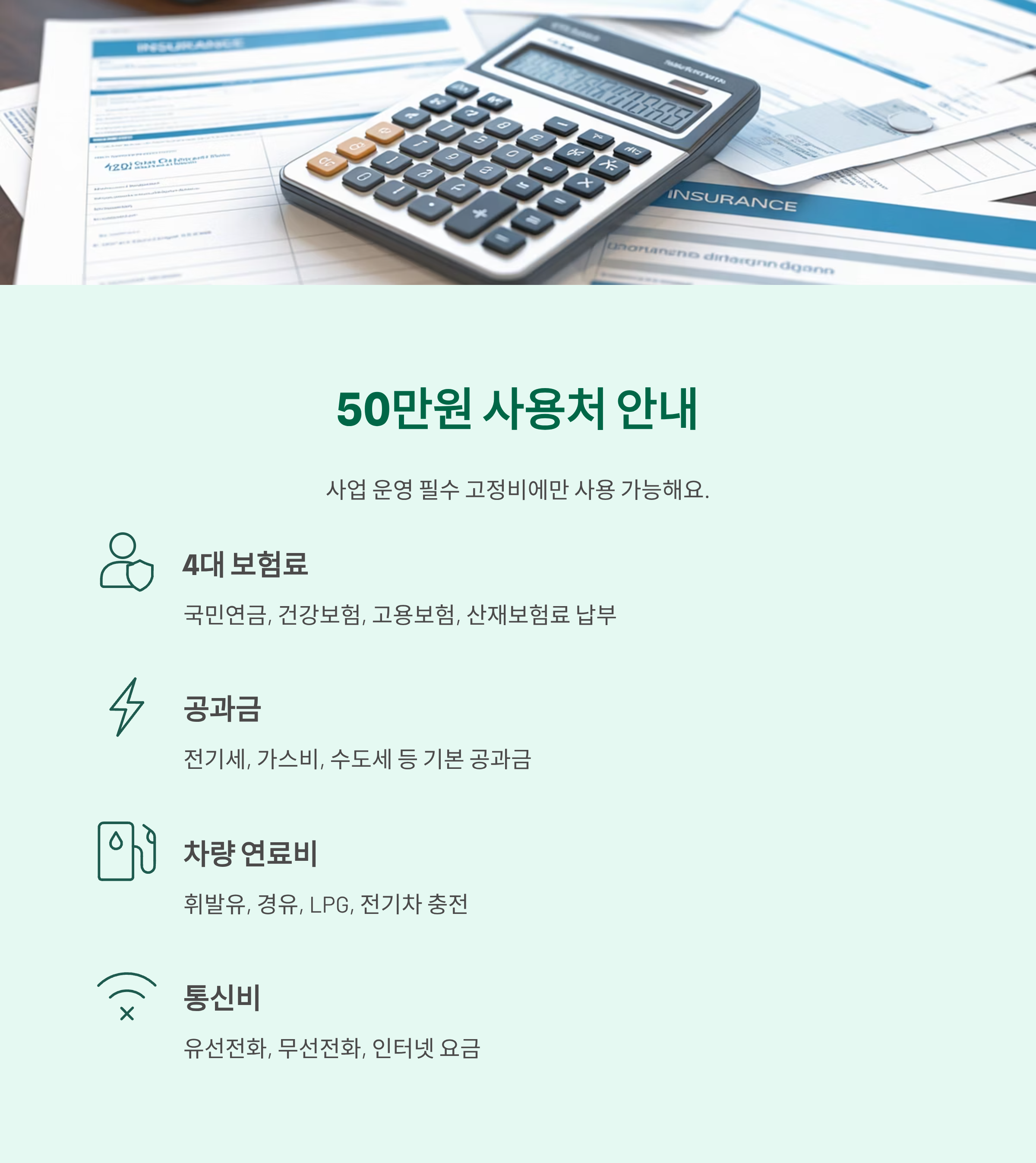 다만 일부 업종은 제외되는데요. 유흥업, 사행성 업종, 가상자산 매매업 등은 지원 대상에서 빠져요. 일반적인 소매업, 음식점, 서비스업을 운영하는 소상공인이라면 대부분 해당된다고 보시면 돼요.3. 50만원 사용처 안내