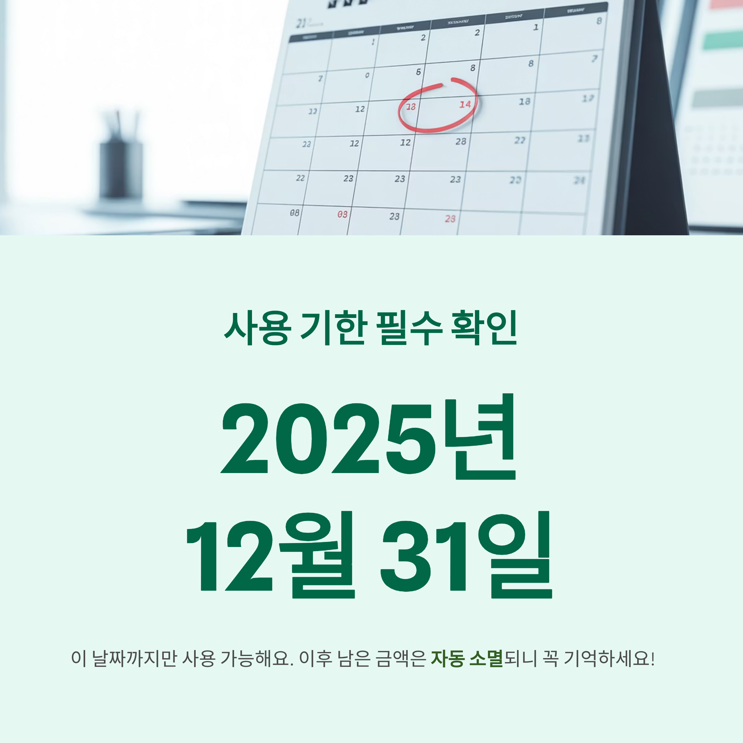 단, 2025년 12월 31일까지만 사용 가능해요. 이 날짜가 지나면 남은 금액은 자동으로 소멸되니까 기한 내에 꼭 사용하세요.4. 신청 방법과 일정