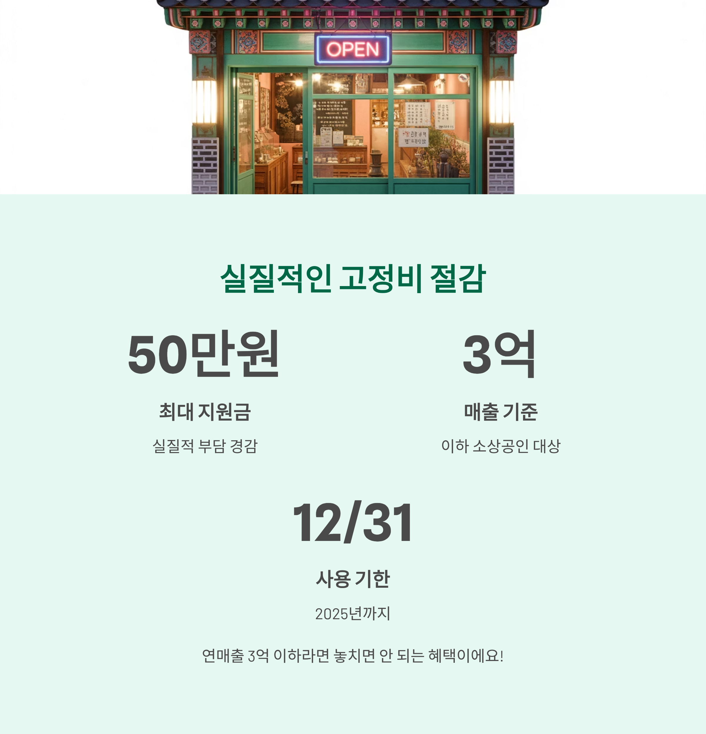 연매출 3억 이하 소상공인이라면 이 지원금은 정말 놓치면 안 되는 혜택이에요. 고정비 부담을 실질적으로 줄여주는 정부 지원 제도니까요.