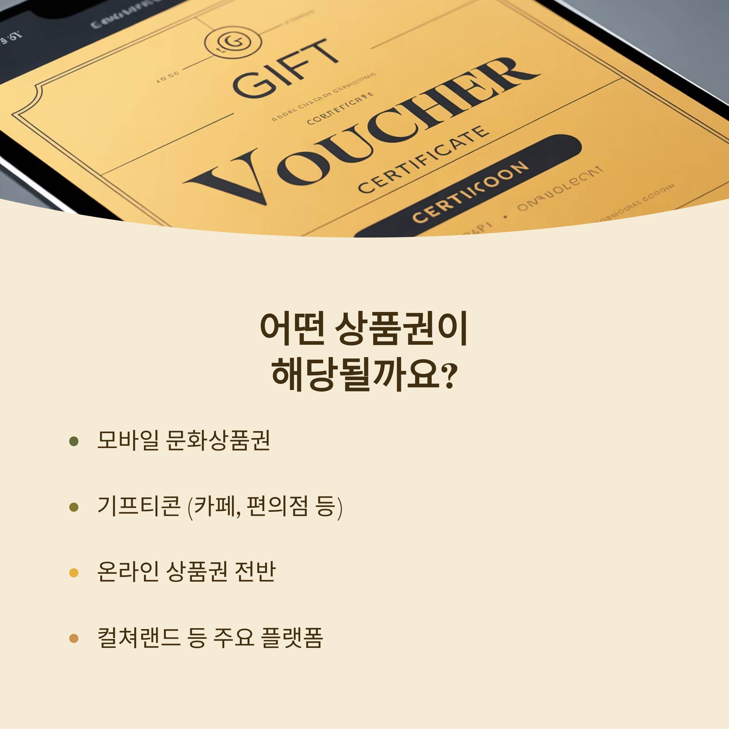 🔸 문화상품권, 온라인 문화상품권, 기프티콘 등 광범위한 모바일 상품권에 적용