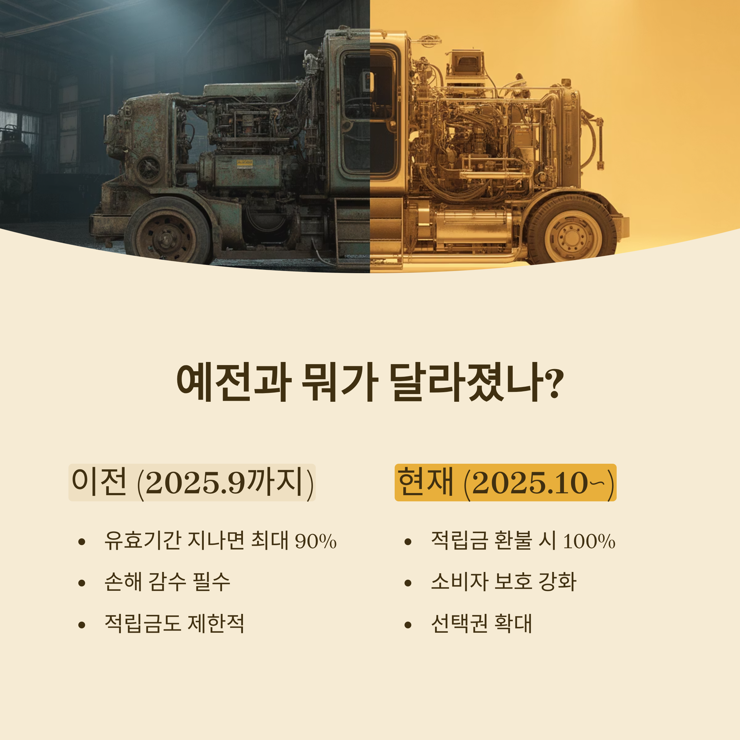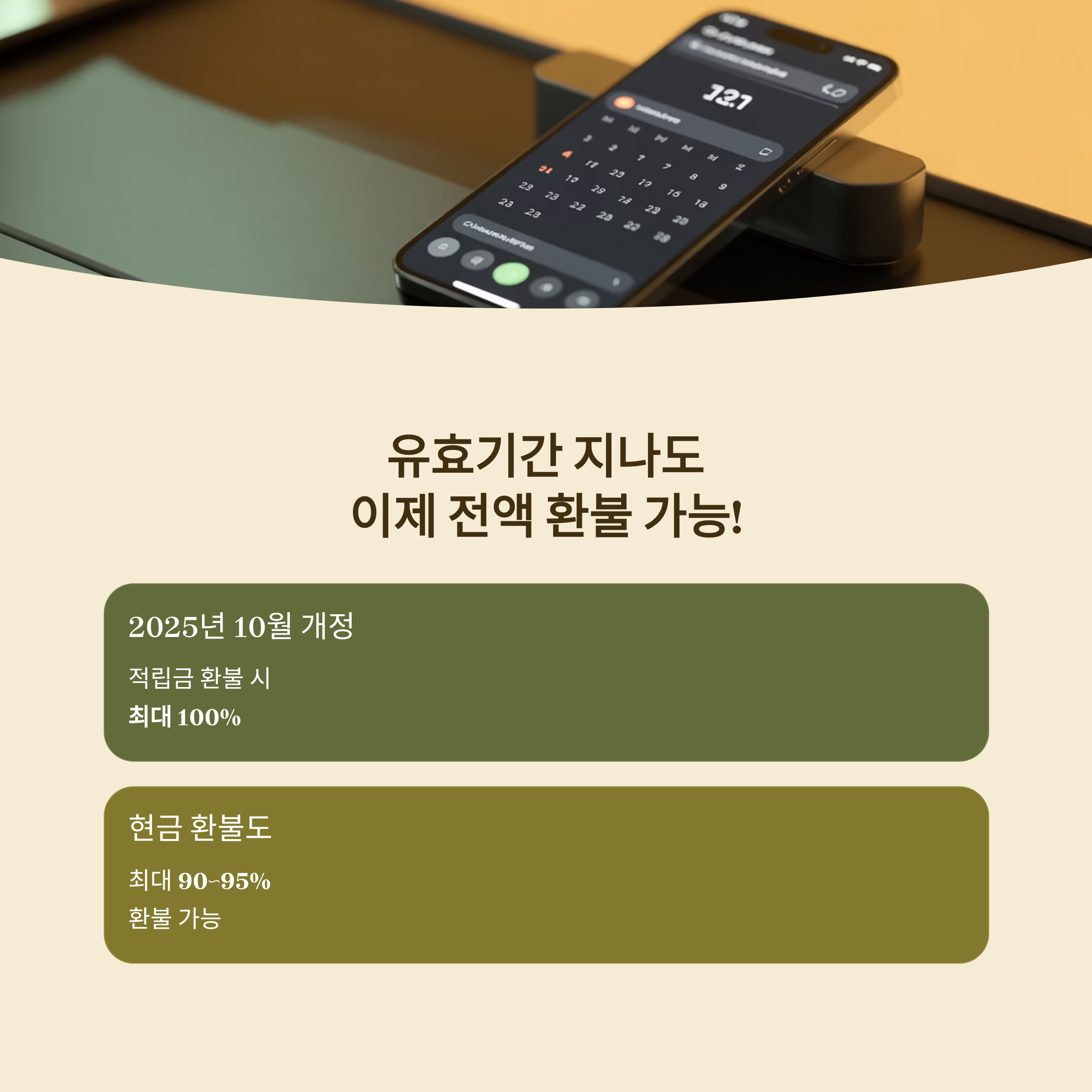 “지나도 전액 가능(단, 적립금 방식)” 유효기간이 이미 지난 경우에도 환불 받을 수 있는 금액이 이전보다 늘어났습니다.