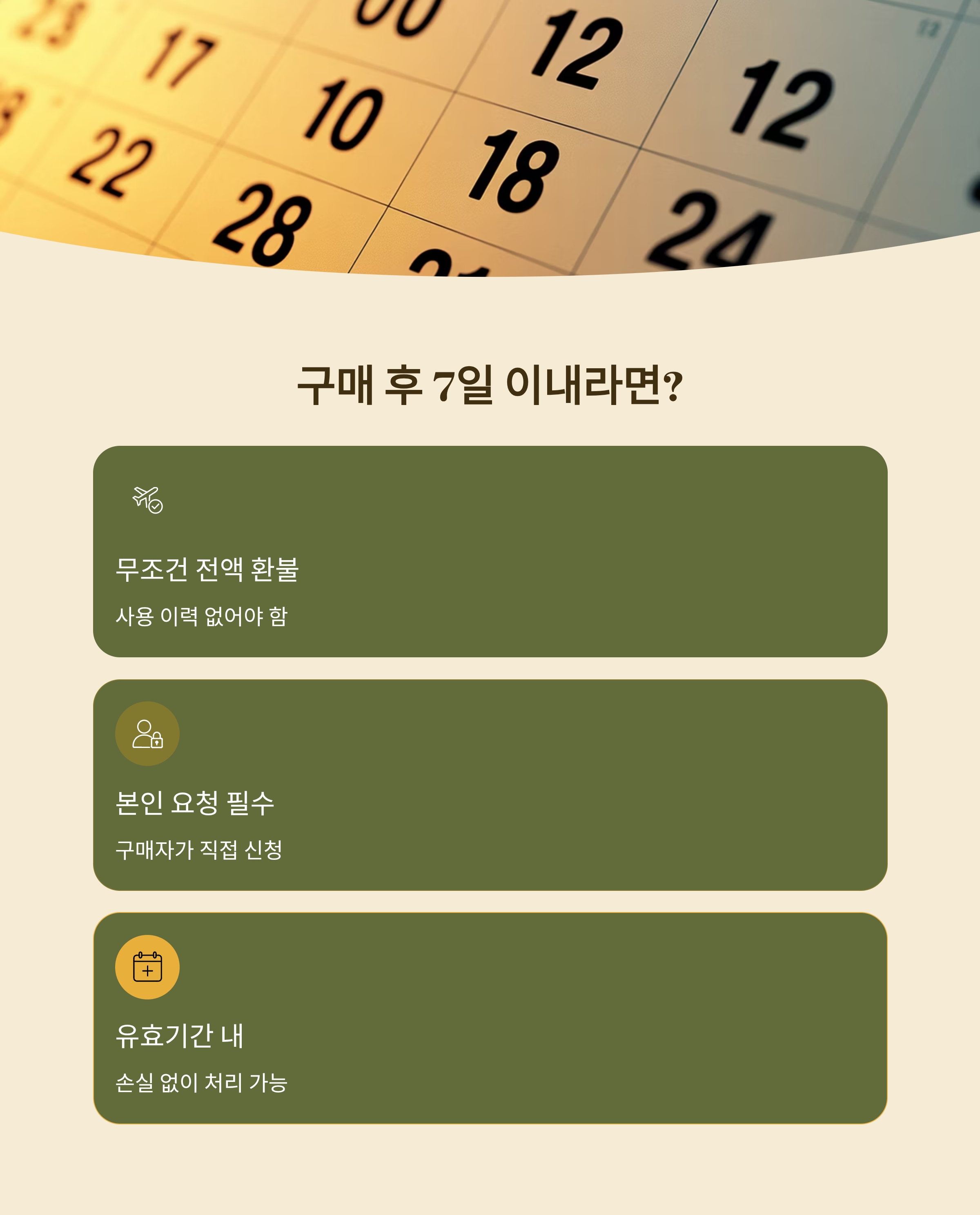 🔸 구매 후 7일 이내: 전액 환불 가능