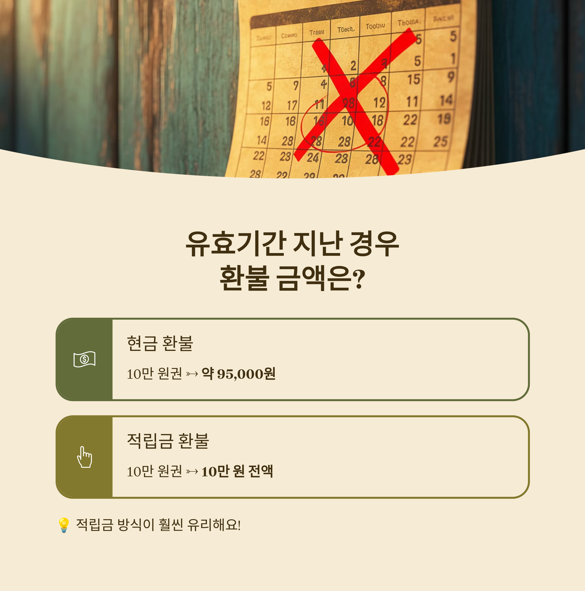 🔸 유효기간 지난 상품권은 적립금 환불이 가장 유리