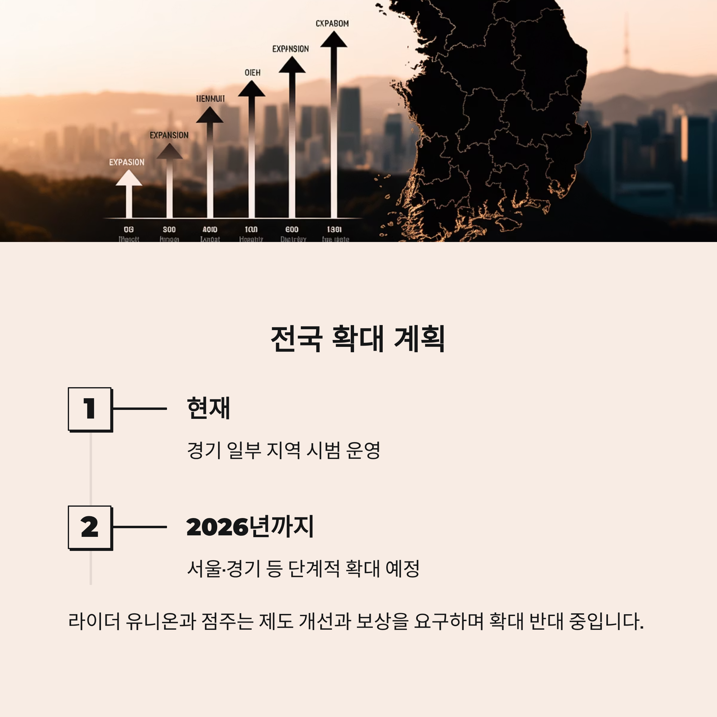 현재 로드러너는 일부 지역에서 테스트 중이지만, 배민 측은 전국 확대 계획을 세우고 있습니다.전자신문 보도에 따르면, 2026년까지 서울·경기 지역 등을 포함한 여러 지역으로 단계적으로 확대할 예정이라고 알려졌어요.