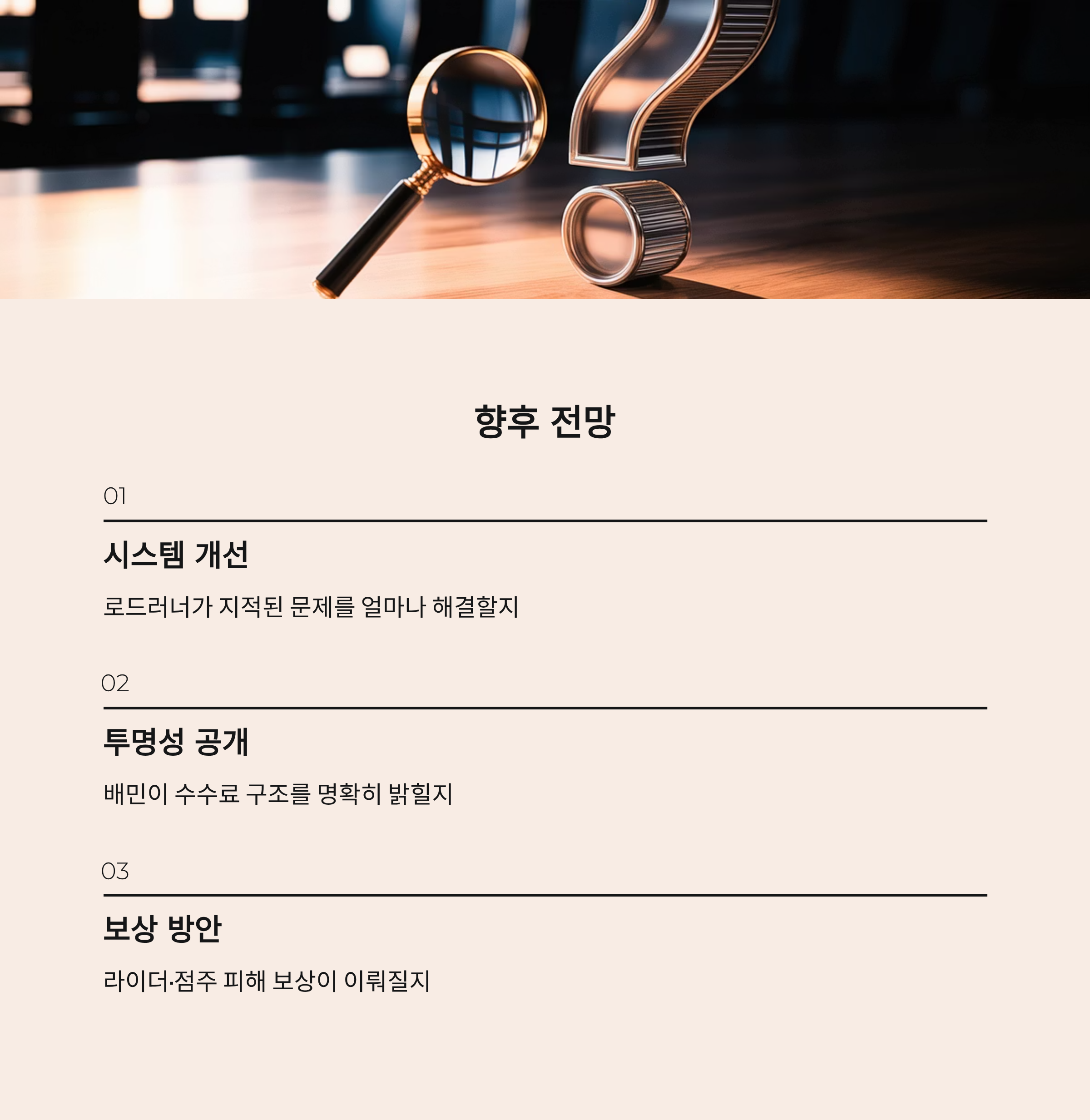 앞으로 로드러너 시스템이 어떻게 개선될지, 그리고 배민이 제기된 문제를 얼마나 투명하게 공개하고 보상할지가 주목됩니다.반응형'▪ 유용한 정보' 카테고리의 다른 글