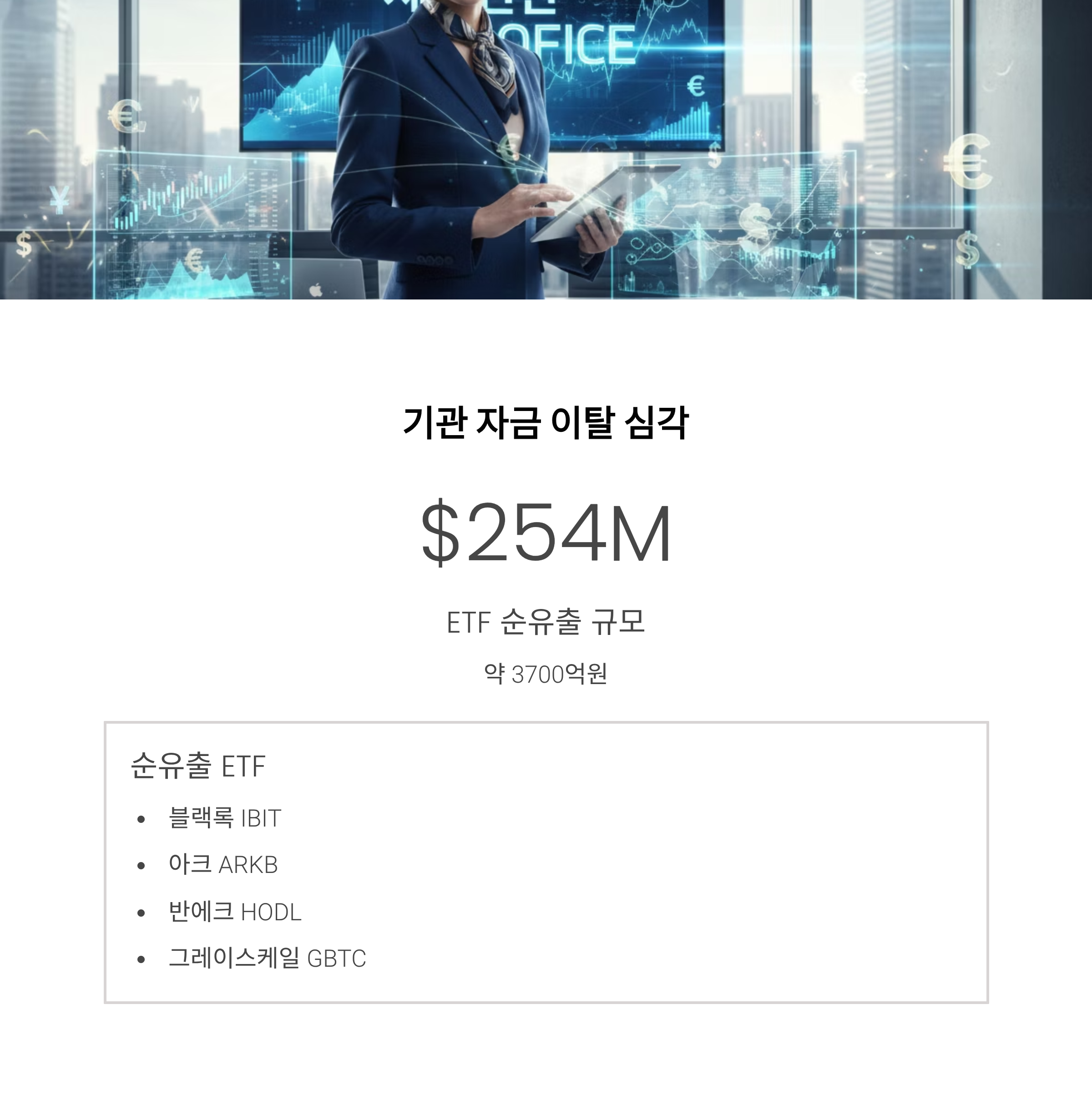 🔸 미국 비트코인 현물 ETF 순유출: 약 2억 5460만 달러(약 3700억원)