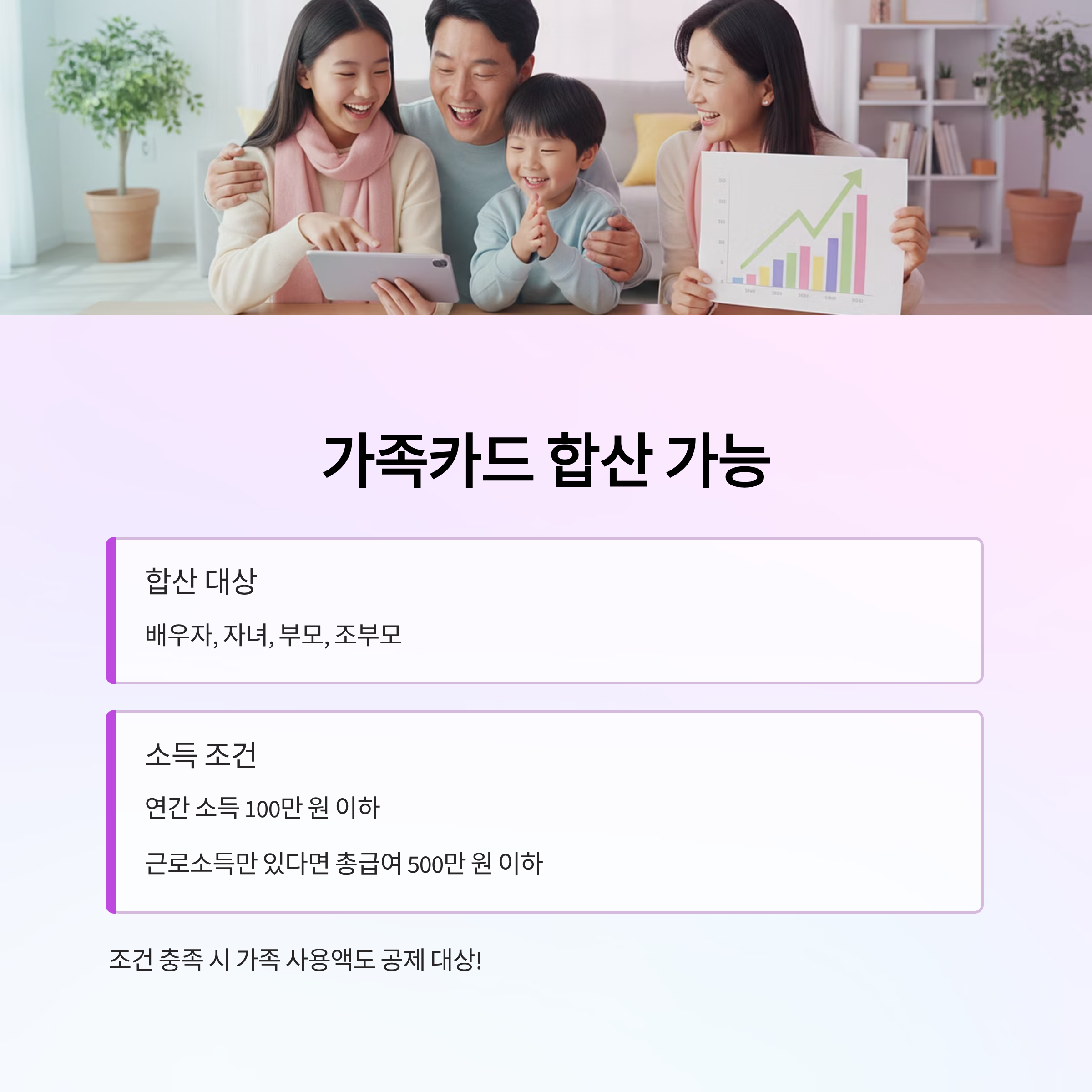 이 방식이 가장 효율적으로 공제액을 끌어올릴 수 있는 구조입니다.3. 가족카드 활용 조건