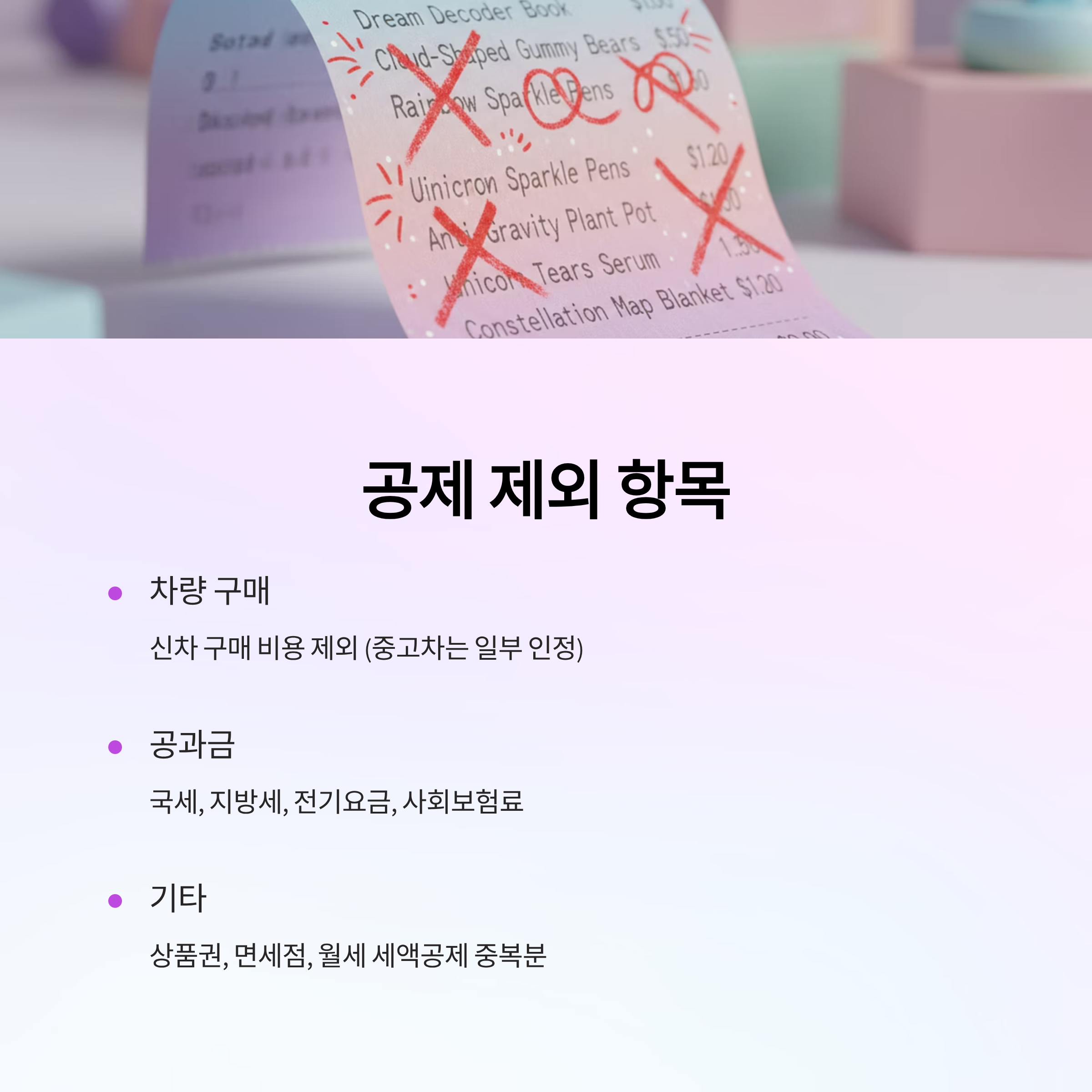 모든 지출이 공제 대상은 아니므로, 제외 항목을 정확히 알고 있어야 불필요한 오해를 피할 수 있습니다.