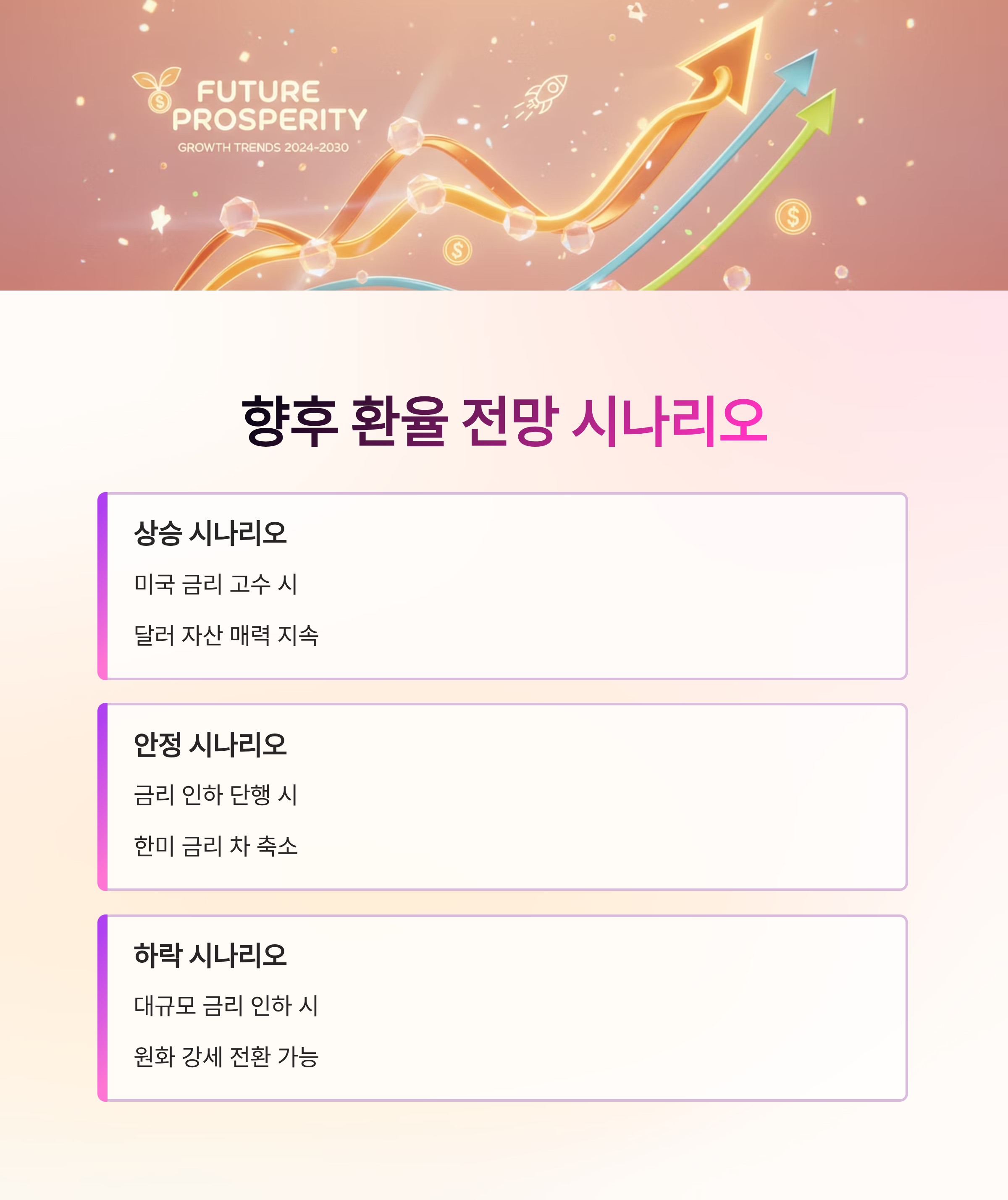 지금의 원·달러 환율 상승은 글로벌 경제, 국내 투자 흐름, 미국과 일본의 정책 등 여러 요인이 복합적으로 작용한 결과입니다. 투자자라면 단기적 환율 변동뿐 아니라 장기적인 금리와 투자 자금 흐름까지 고려하는 전략이 필요합니다.