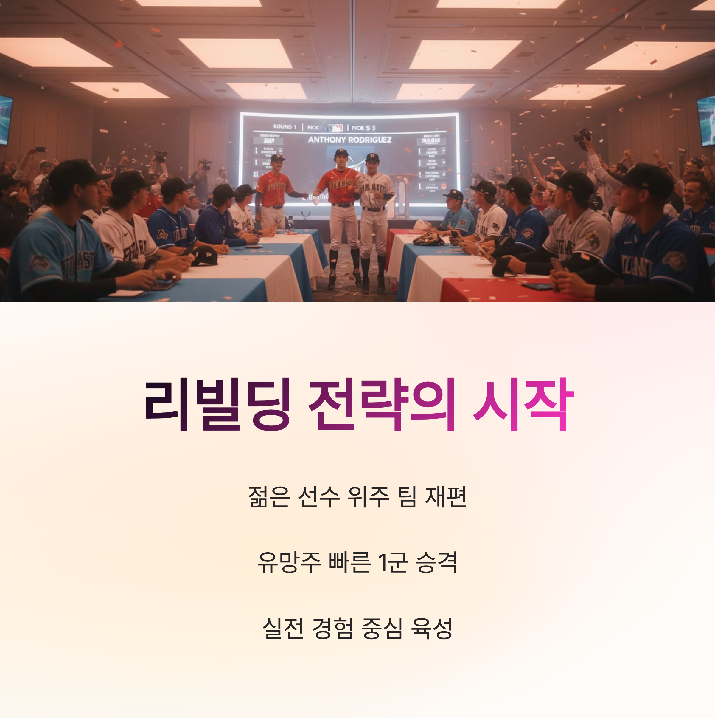 키움 히어로즈는 몇 시즌 전부터 젊은 선수 위주로 팀을 재편하는 리빌딩 전략을 선택했어요.드래프트 상위 라운드에서 뽑은 유망주들을 빠르게 1군에 올려 실전 경험을 쌓게 하는 방식이죠. 장기적으로 보면 팀 경쟁력을 높이는 좋은 전략이에요.