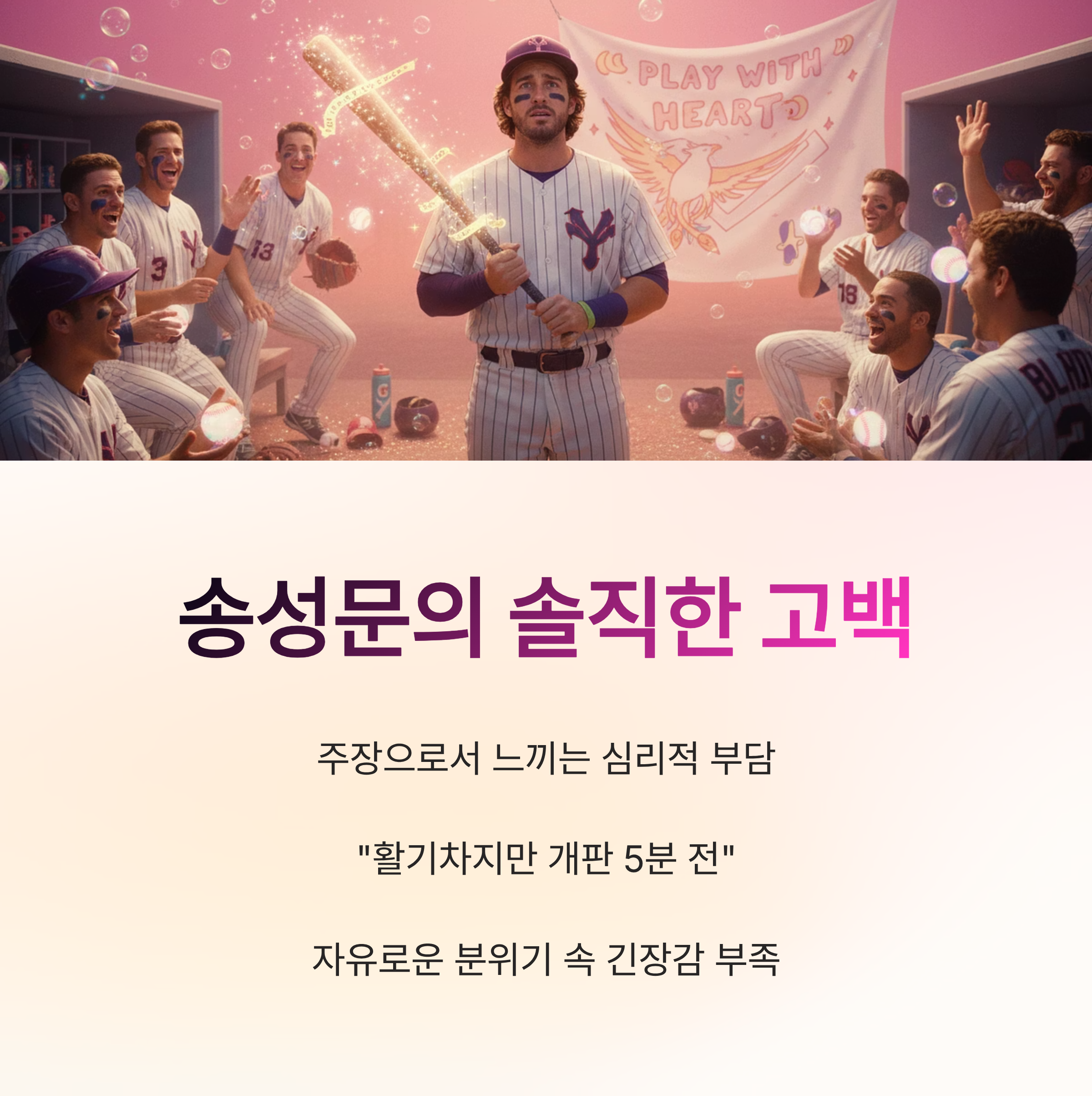송성문 선수는 "오히려 내가 눈치를 본다"는 말까지 했어요.젊은 후배들에게 너무 엄하게 하면 분위기가 무거워질까 봐, 그렇다고 너무 느슨하게 하면 기강이 흐트러질까 봐 고민이 많았던 거죠. 주장으로서 팀을 이끌어야 하는데, 실제로는 혼자서 균형을 맞추느라 힘들어했던 상황이 고스란히 드러난 발언이었어요.