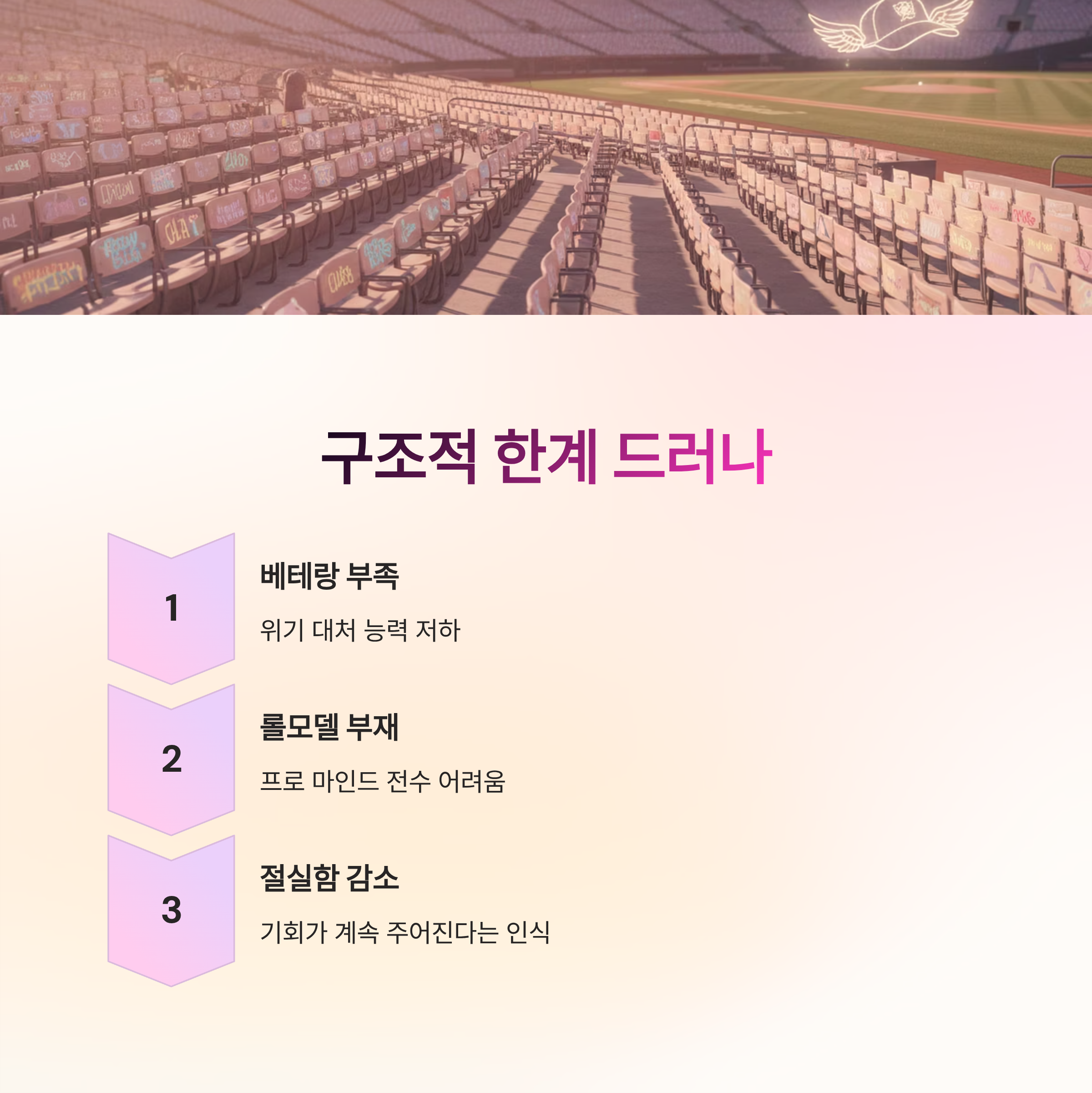 하지만 이 과정에서 구조적 한계도 분명히 드러났어요.경험 많은 배테랑 선수가 부족하다 보니 위기 상황에서 대처 능력이 떨어지고, 젊은 선수들에게 프로의 마인드를 전수해줄 롤모델이 부족했던 거죠. 송성문 개판 5분 전 발언은 이런 리빌딩 과정의 부작용을 정확히 짚어낸 표현이라고 볼 수 있어요.