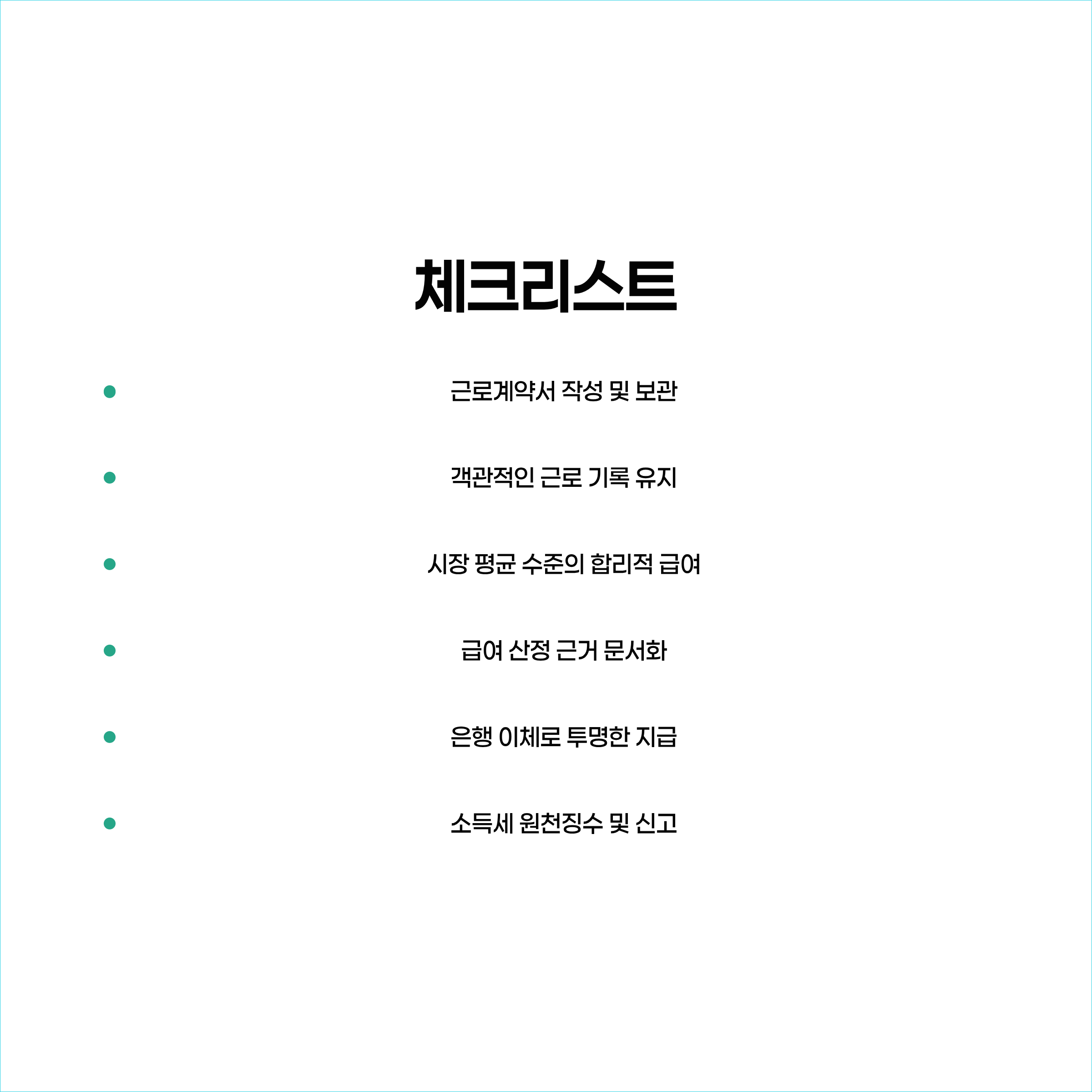 정당한 임금임을 입증하기 위해서는 자녀의 근로 내역을 객관적으로 기록하고 보관하는 것이 가장 중요합니다. 증빙 자료가 부족할 경우, 세무 당국은 '실제 근로 없이 급여만 지급했다'는 의심을 할 수 있습니다.반드시 준비해야 할 핵심 자료