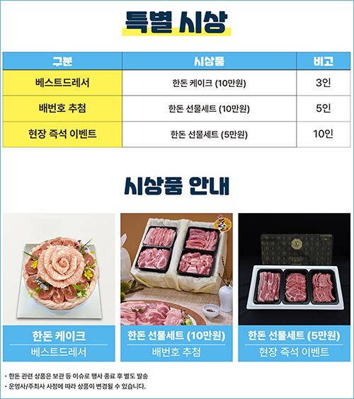 한돈런은 이벤트성 대회임에도 불구하고 시상 혜택이 정말 풍성합니다!