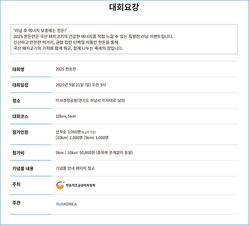 한돈런은 한국산 돼지고기인 '한돈'을 알리기 위해 기획된 특별한 러닝 이벤트입니다. 최근 다양한 브랜드에서 홍보와 체험을 결합한 러닝 대회가 인기를 끌고 있는데, 한돈런도 그런 트렌드에 맞춰 탄생한 대회입니다.