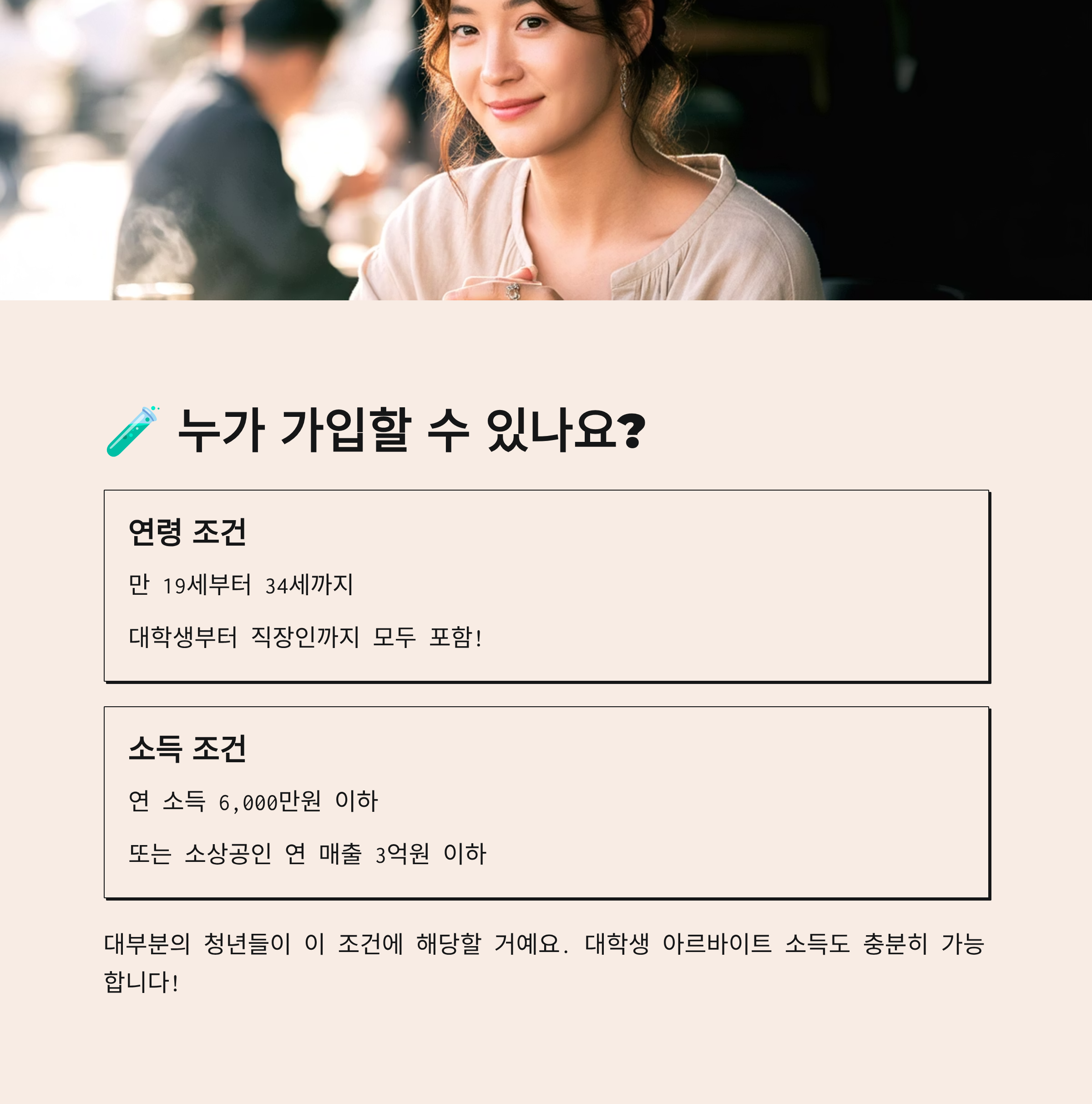 가입 자격은 생각보다 넓어요! 다음 조건만 맞으면 누구나 가입할 수 있어요: