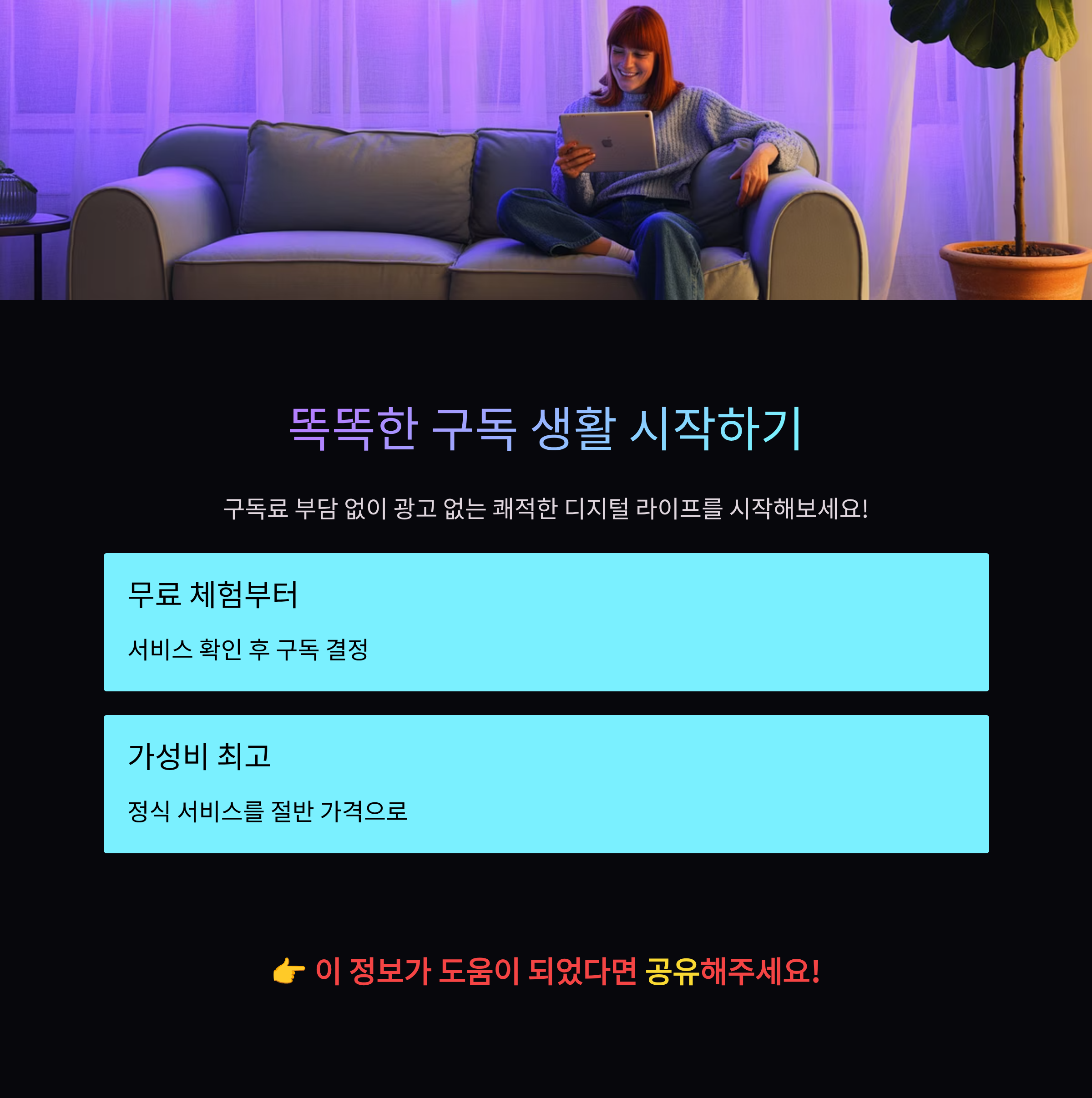 구독료 걱정 없이 광고 없는쾌적한 유튜브 생활을 시작해보세요!