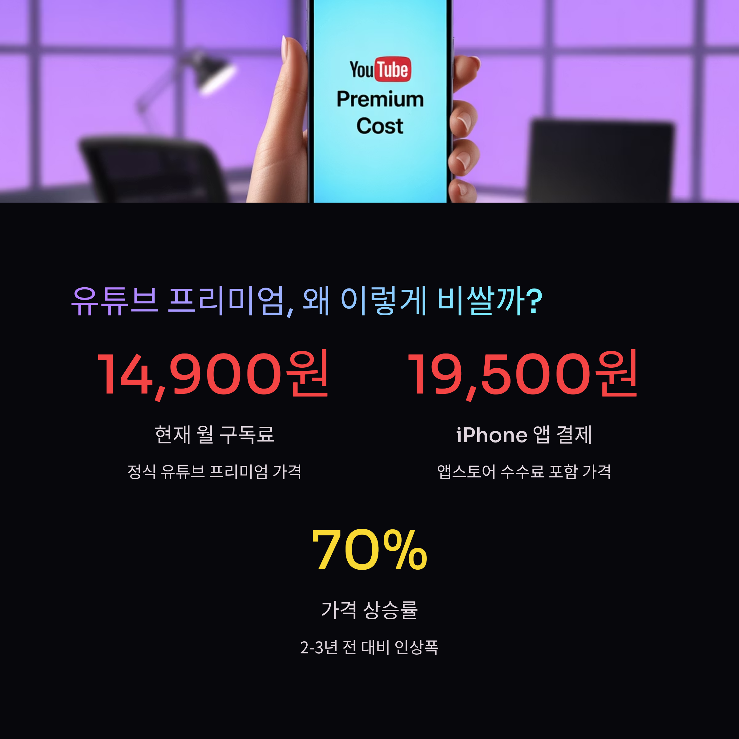 1. 유튜브 프리미엄, 왜 이렇게 비쌀까?유튜브 프리미엄의 현재 정식 구독료는 월 14,900원입니다. iPhone 사용자가 앱에서 결제할 경우에는 월 19,500원까지 올라가죠.