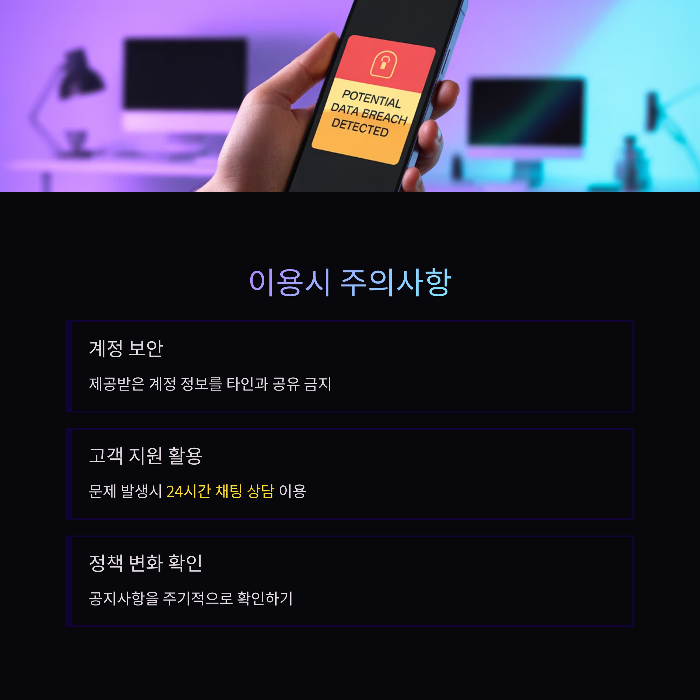 • 계정 문제 발생 시 신속한 복구 지원