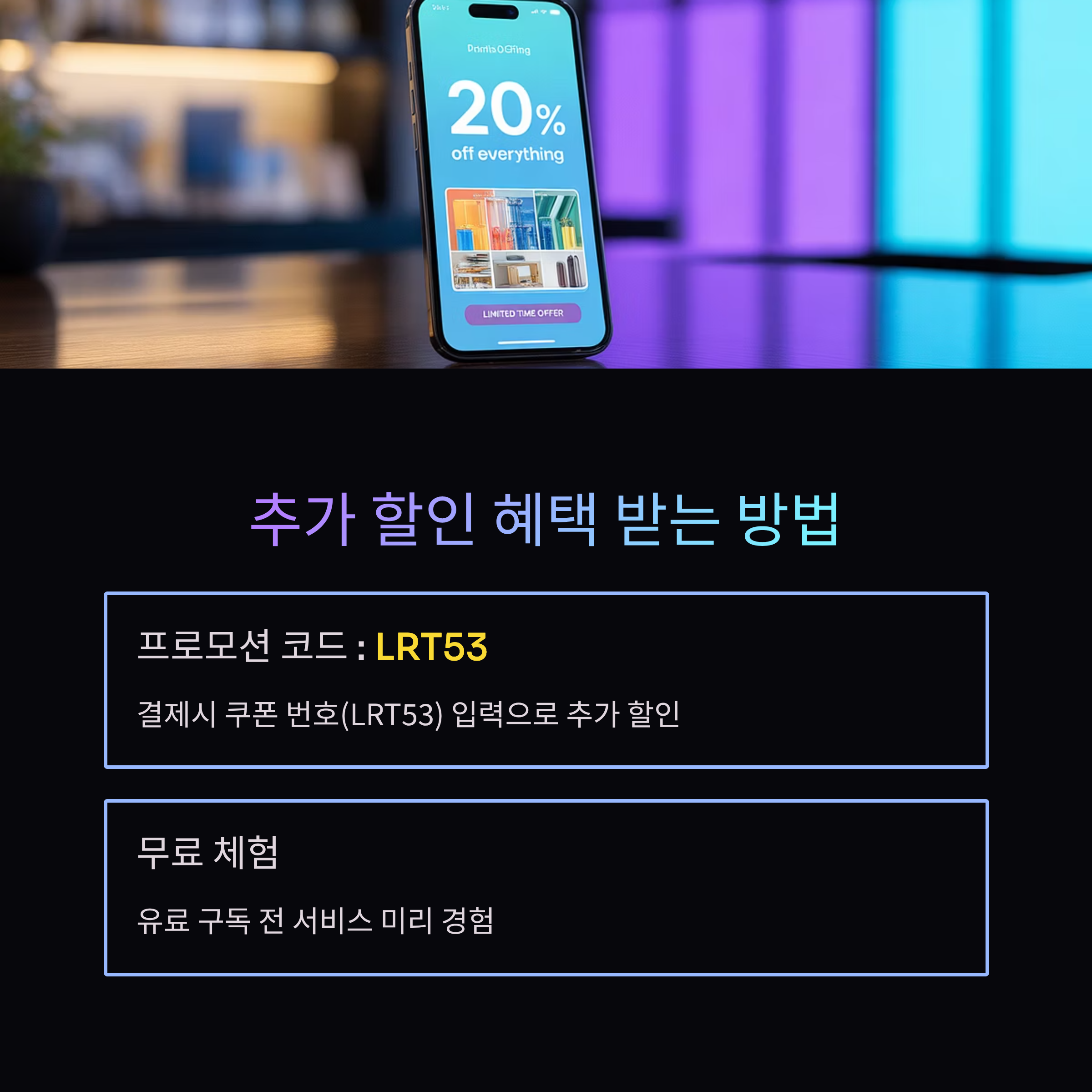 • 정식 구독 방식으로 안전한 이용 보장할인코드 : LRT53