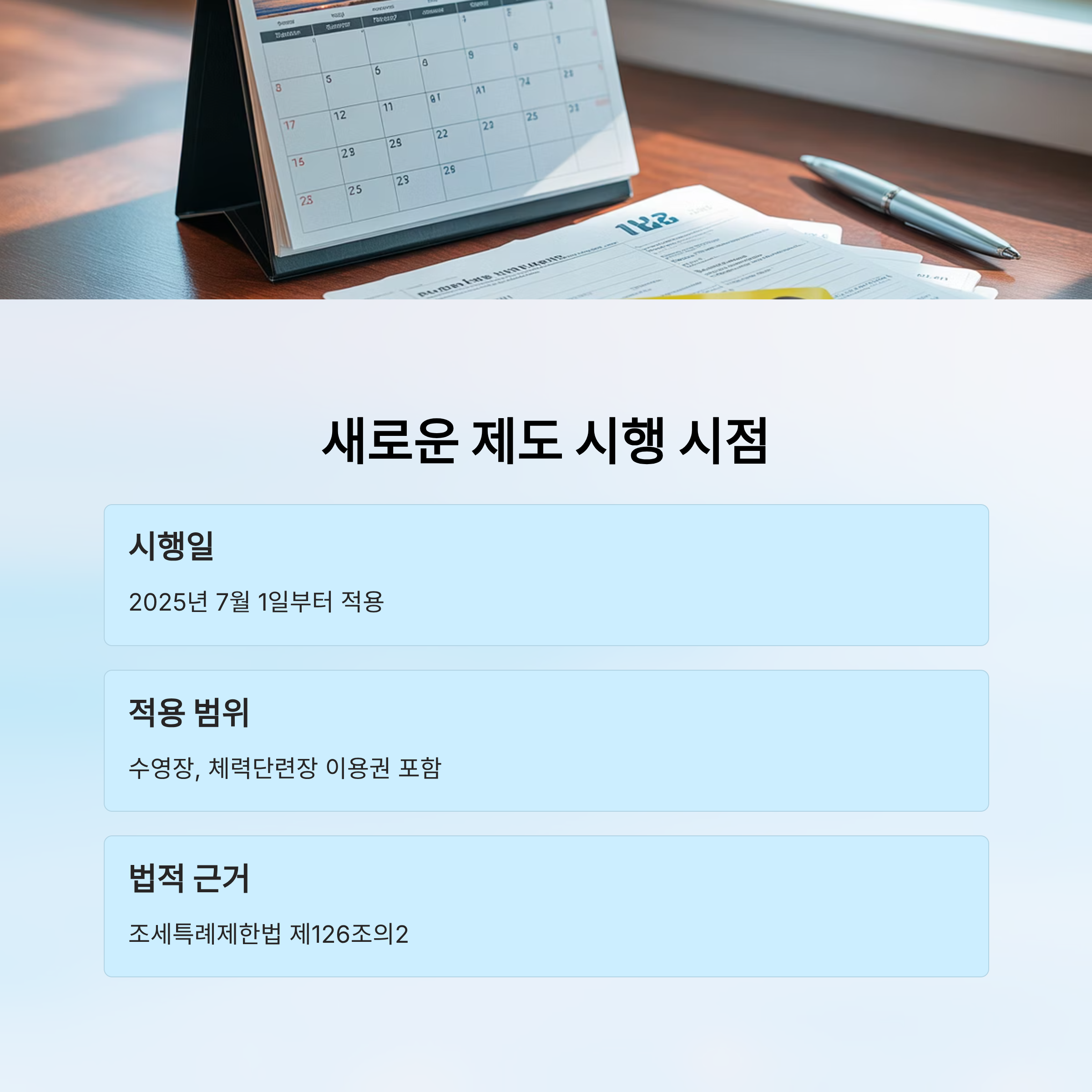 2025년 7월 1일부터 수영장, 체력단련장 시설 이용권의 문화비 소득공제가 추가로 적용되기 시작했어요.이는 조세특례제한법 제126조의2에 따른 '신용카드 등 사용금액에 대한 소득공제' 제도의 확대 적용이랍니다.