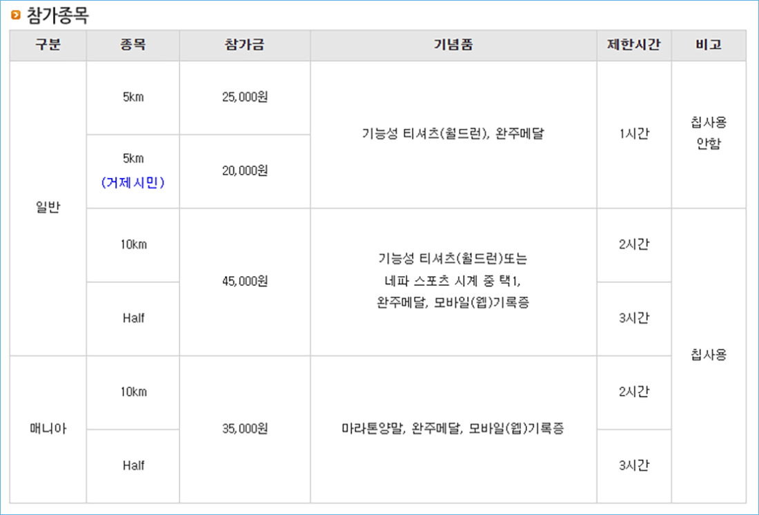 ▪️5km : 25,000원 (거제시민 20,000원)매니아 참가자 참가비