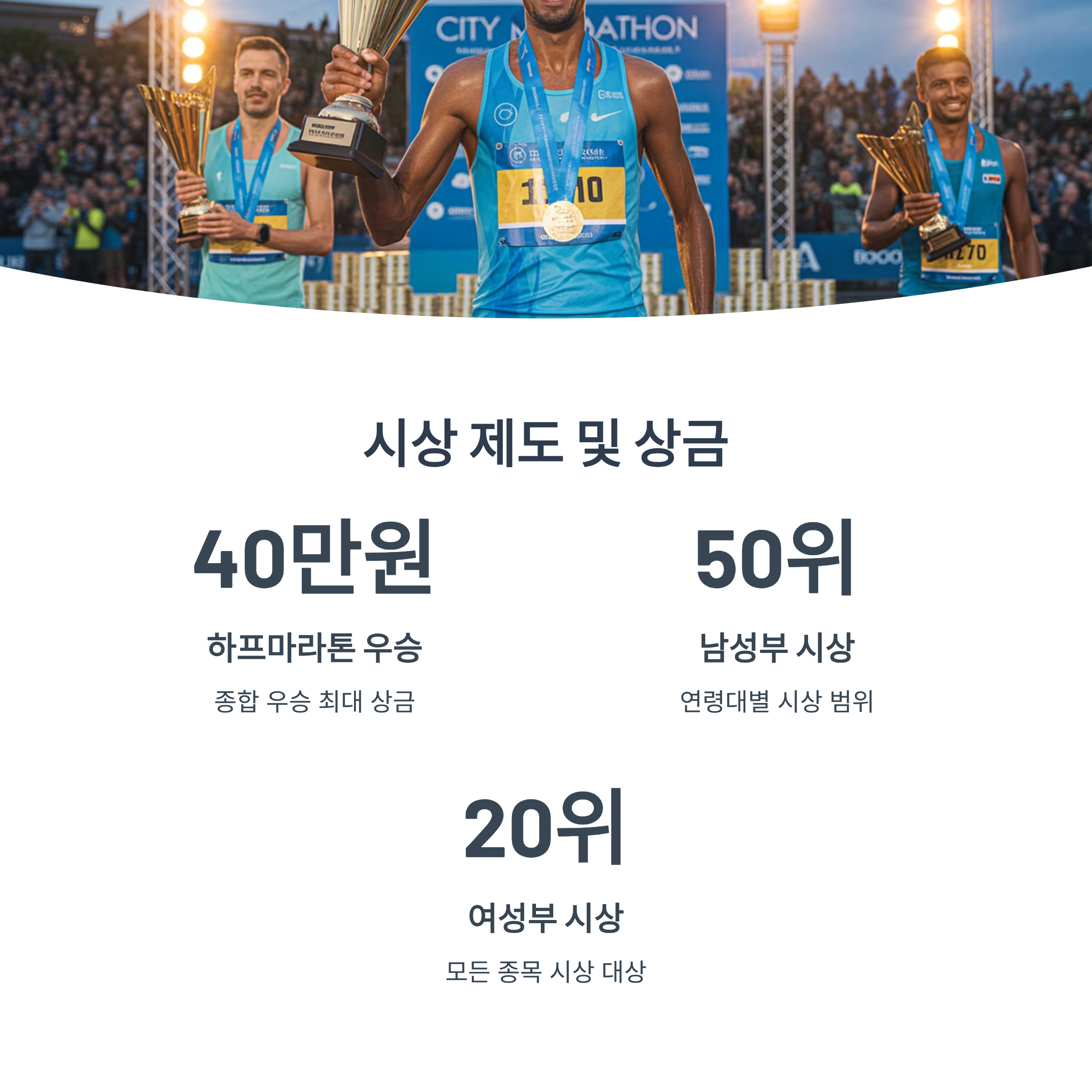 특별 시상▪️ 하프마라톤 종합 우승 상금: 최대 40만원