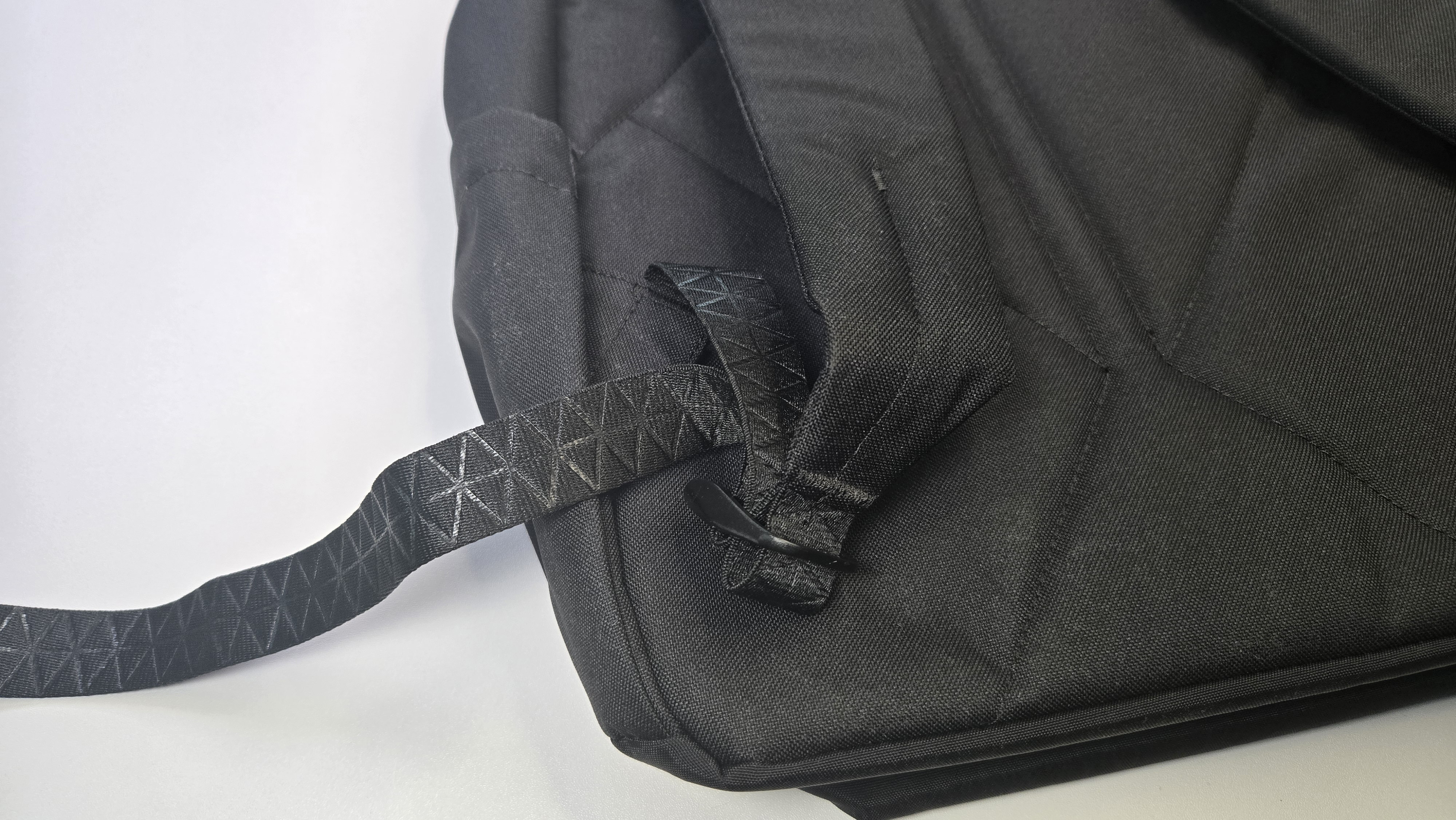 📢 양쪽에 위치한 사이드 포켓은 물병이나 텀블러 수납에 최적화되어 있습니다. 신축성 있는 소재로 제작되어 다양한 크기의 물병을 안정적으로 고정할 수 있습니다.노트북 보호 성능